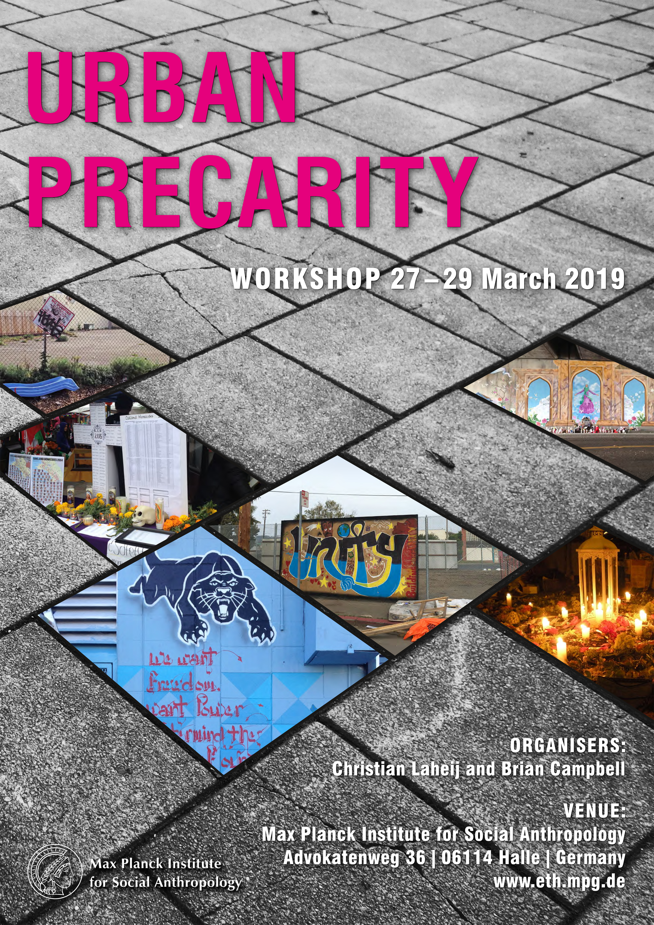 Vom 27.–29. März 2019 findet am Max-Planck-Institut für ethnologische Forschung (MPI) ein Workshop mit dem Titel „Urban Precarity“ statt. Die Teilnehmer des Workshops werden sich damit auseinandersetzen, wie das urbane Leben durch Prekaritätserfahrungen geprägt ist. Dabei werden sie die vielfältigen Aspekte von Prekarität beleuchten. Prekarität wird nicht nur als materielle Knappheit verstanden, sondern als ein Phänomen betrachtet, das auch moralische, rechtliche, politische, diskursive, räumliche und wirtschaftliche Dimensionen hat. Der Workshop wird von Christian Laheij und Brian Campbell aus der Abteilung ‚Integration und Konflikt‘ organisiert. Die Sprache des Workshops ist Englisch.