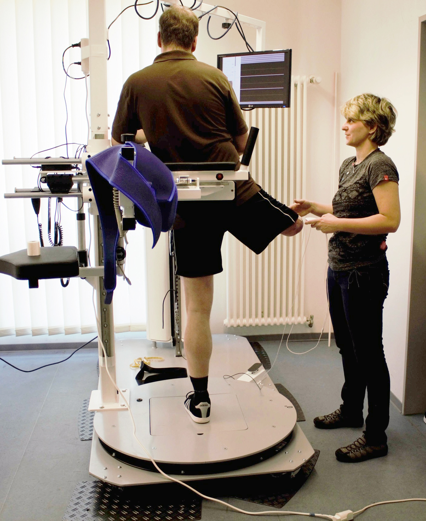 Bei dem etwa zwei Meter hohen, mulitifunktionalen Diagnose- und Trainingsgerät misst eine integrierte Kraftmessplatte die Gleichgewichtsfähigkeit der Patienten. Eine drehbare Bodenplatte ermöglicht die Diagnostik des Hüftgelenks in alle Bewegungsrichtungen, ohne dass der Proband die Position im Gerät wechseln muss. Um das Standbein während der Diagnostik zu entlasten, wurde ein schwenkbarer Sitz integriert. Die erhobenen Parameter entscheiden über die Einstufung in sogenannte Mobilitätsklassen. Diese Klassen sind ein wesentliches Kriterium für die Auswahl einer geeigneten Prothese.