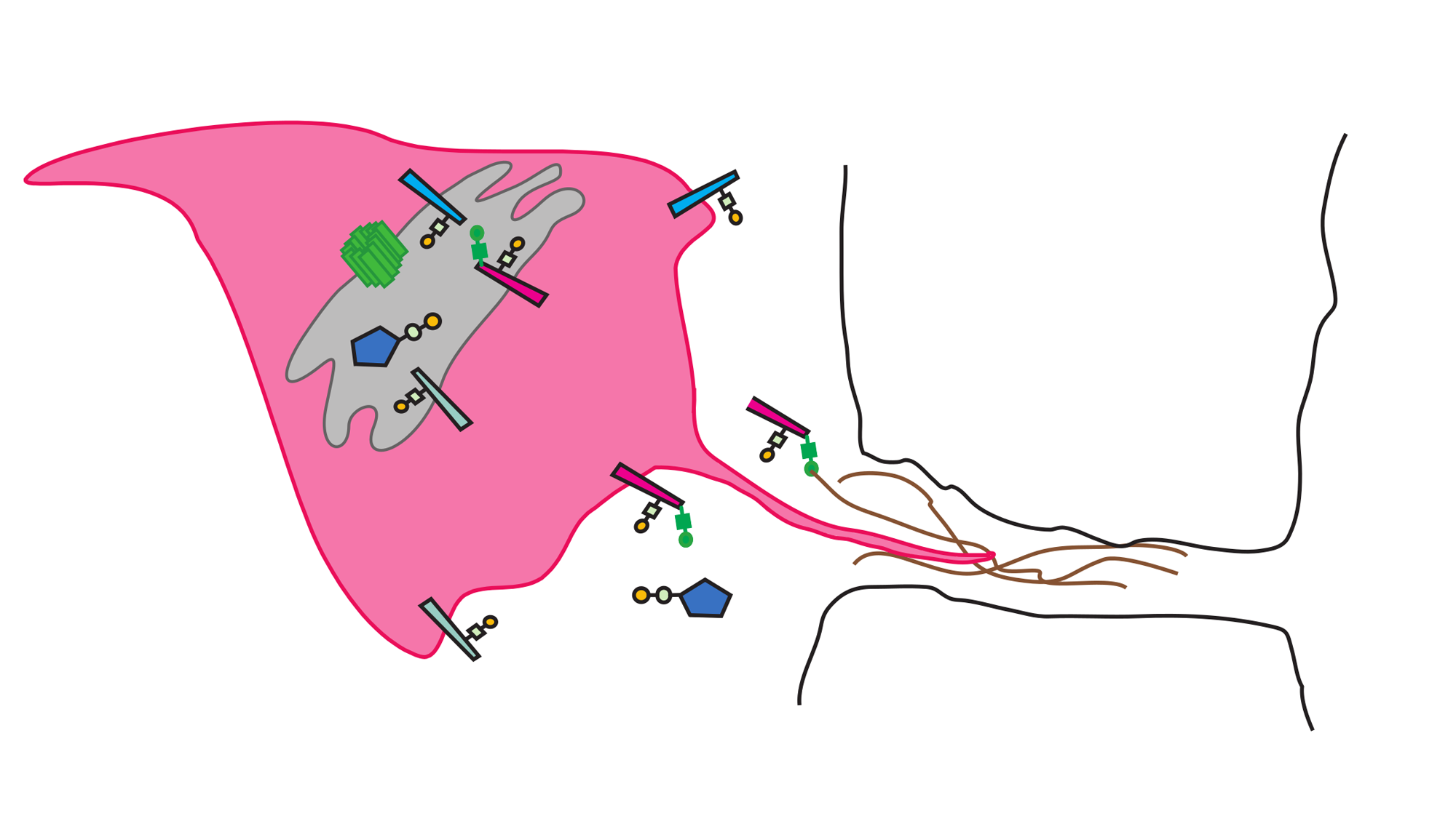 Wenn Krebszellen metastasieren, verlassen sie den ursprünglichen Ort des Tumors und drängen zwischen anderen Zellen hindurch in die Blutbahn, die sie quasi als „Autobahnen“ durch den Körper nutzen. Um die Blutbahn zu verlassen, zwängen sich die metastasierenden Zellen wiederum zwischen Zellen hindurch in das Gewebe, wo sie Metastasen bilden. T-Antigen, eine Kombination bestimmter Zuckermoleküle, ist auf den Proteinen metastasierender menschlicher Krebszellen zu finden. In den meisten anderen adulten Geweben ist es dagegen normalerweise nicht vorhanden. Immunzellen der Fruchtfliege, sogenannte Makrophagen, tragen auch T-Antigene und zwängen sich ebenfalls zwischen Zellen hindurch, um in Gewebe einzudringen. Daher beschlossen Daria Siekhaus und ihre Gruppe, die Fruchtfliege und ihre Immunzellen als Modell zu verwenden, anhand dessen sie untersuchten, wie das Auftreten von T-Antigen auf Proteinen reguliert wird und welche Proteine davon betroffen sind. „Die Fruchtfliege ist der ideale Organismus, um neue Wirkungspfade zu finden, denn komplexe genetische Experimente können mit Fliegen schnell durchgeführt werden. Hier nutzen wir wieder die Fliege als Quelle für Entdeckungen bei einer Fragestellung, die auch uns Menschen betrifft“, erklärt Daria Siekhaus.