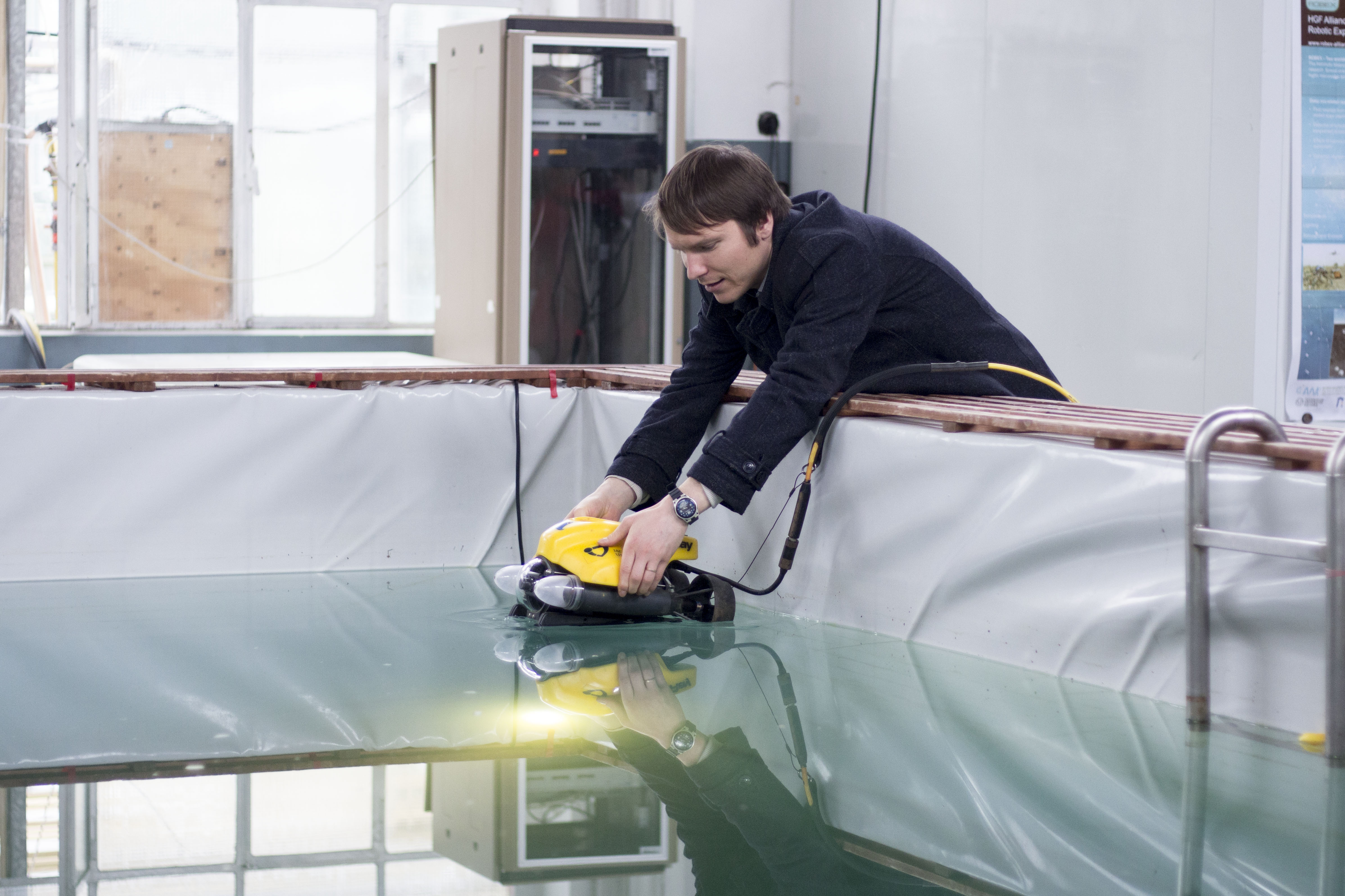Der Workshop „Ocean Robots“ lud zum Mitmachen ein: gemeinsam mit dem Dozenten, Dr. Szymon Krupiński, durfte die Gruppe ausprobieren, wie man einen der kleinsten Unterwasserroboter der Welt steuert. Krupiński ist es wichtig seine Begeisterung für die Meeresrobotik mit interessierten Schülerinnen und Schülern zu teilen: „Wer weiß - vielleicht werden einige dieser jungen Talente in ein paar Jahren unsere Arbeitskollegen?"