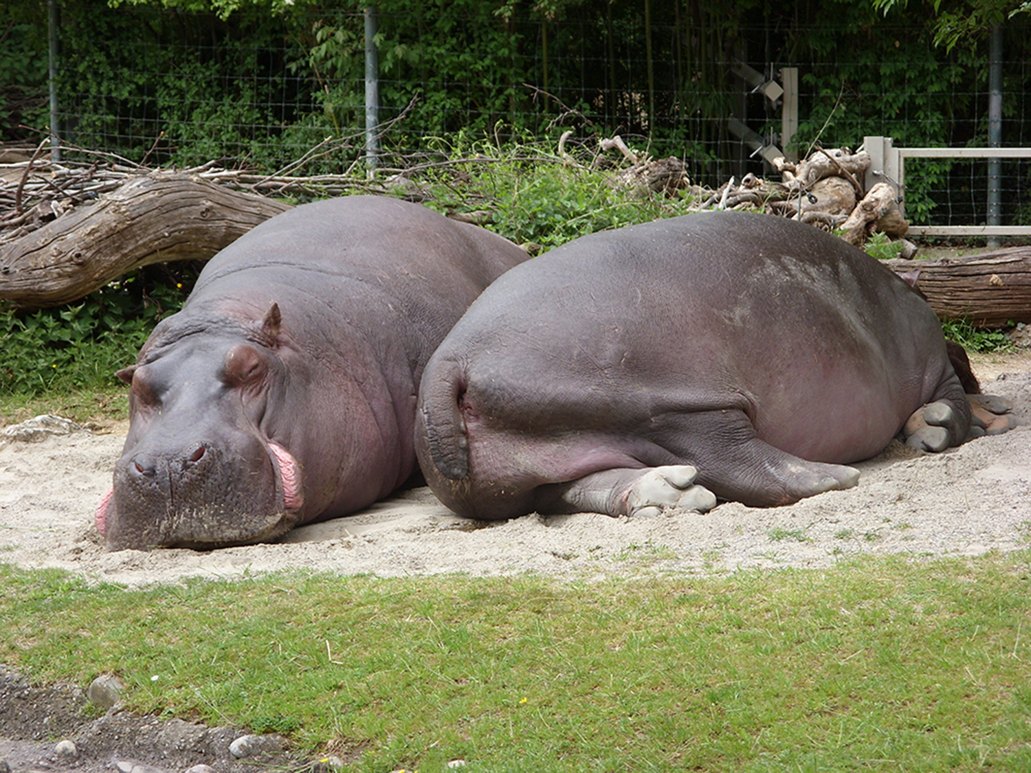 In contrast to elephants, hippos seem to remain flexible even in old age and lie on their sides. Rodents, it was found, occasionally like to take a break sitting down. The only animal investigated that sometimes rests on its back is the red kangaroo.