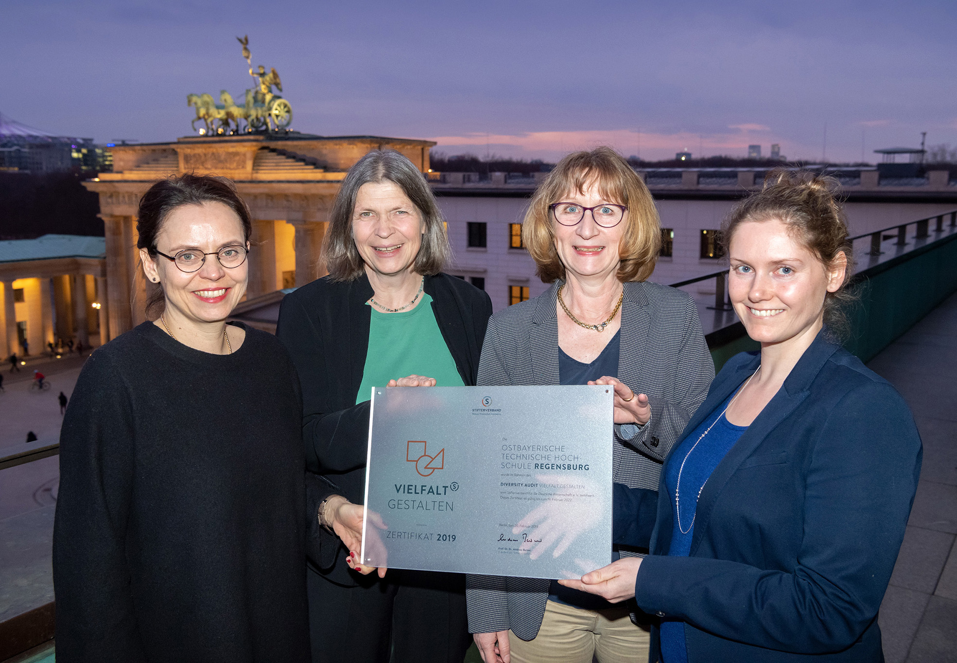 Süß-Gebhard, Frauenbeauftragte der OTH Regensburg, in Berlin das Zertifikat erhalten.