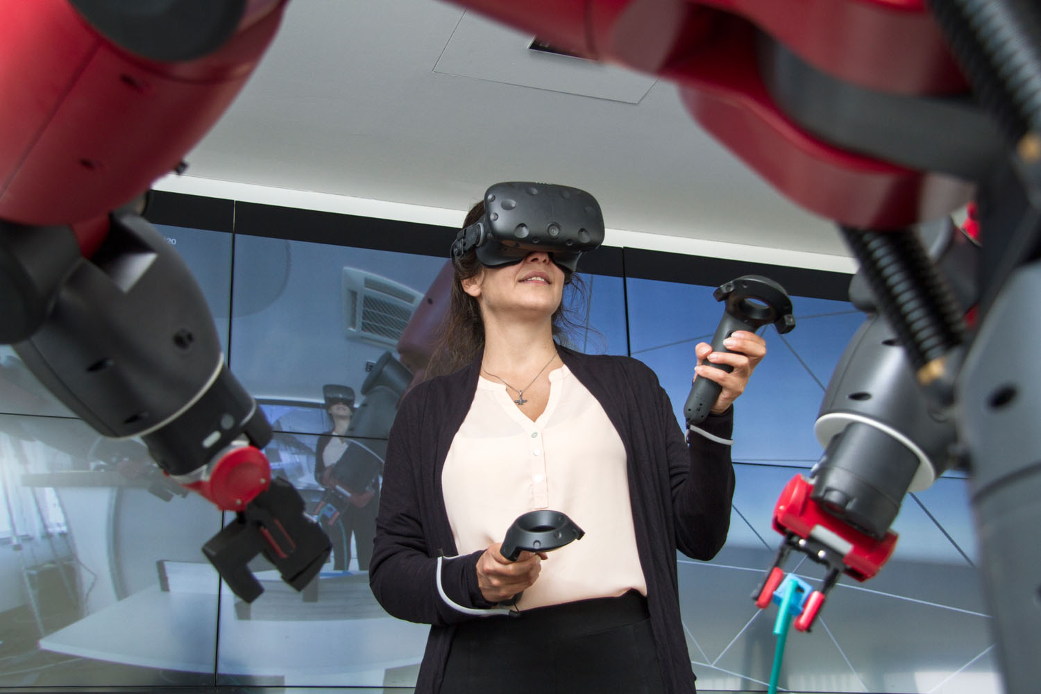 Die Mobilfunkverbindung wird über eine 60 Ghz-Frequenz mit Smallcells umgesetzt, einer kleinen Funkzelle, die aus einer Basisstation mit Mobilfunk-Antenne besteht. Dies sorgt für eine ruckelfreie VR-Umgebung und eine nahezu verzögerungsfreie Roboterfernsteuerung.