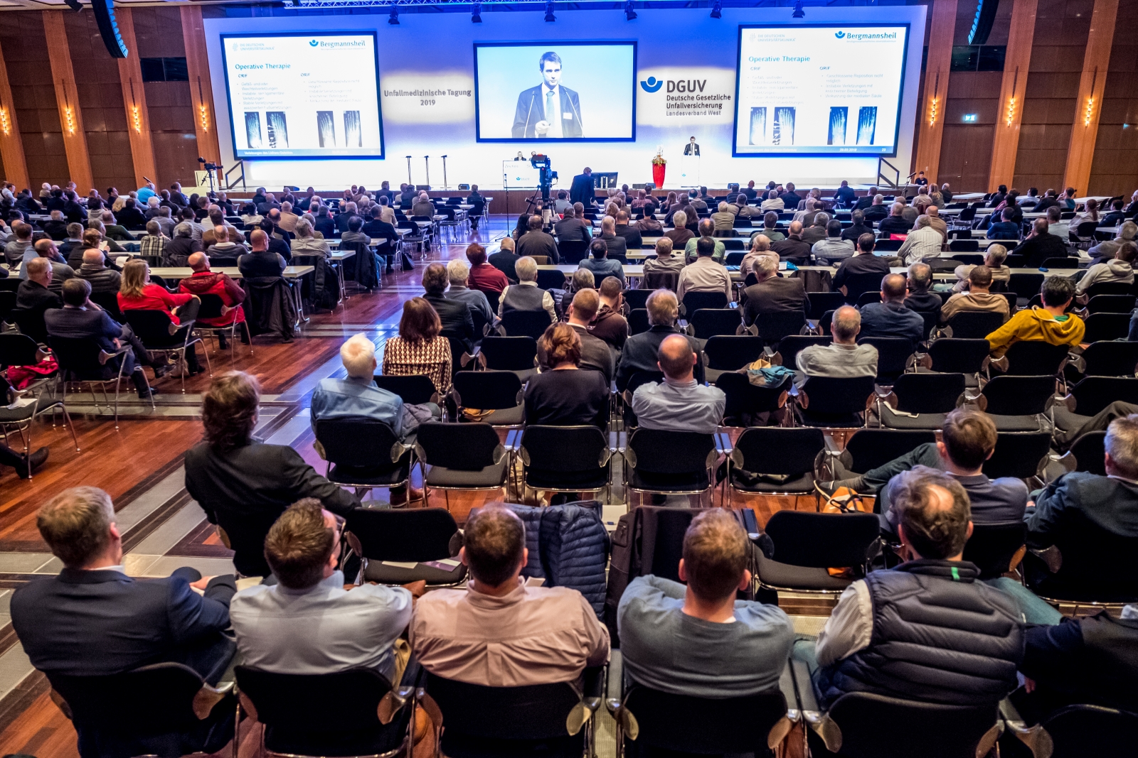 Sie zählt zu den größten Fachkongressen ihrer Art in Deutschland: Die Unfallmedizinische Tagung, die regelmäßig vom Landesverband West der Deutschen Gesetzlichen Unfallversicherung (DGUV) ausgerichtet wird. Vom 29. bis 30. März 2019 nutzten über 2.700 Experten die Gelegenheit, sich über Fortschritte und neue Erkenntnisse auf den Gebieten der Unfallchirurgie und Orthopädie zu informieren. 40 Vorsitzende und Referenten boten ein vielfältiges Programm. Wissenschaftliche Leiter waren Univ.-Prof. Dr. Thomas A. Schildhauer (BG Universitätsklinikum Bergmannsheil Bochum/BG Klinikum Duisburg), Univ.-Prof. Dr. Bertil Bouillon (Klinikum Köln-Merheim) und Univ.-Prof. Dr. Michael Raschke (Universitätsklinikum Münster). Die Tagung fand im Congresscenter in Düsseldorf statt.
