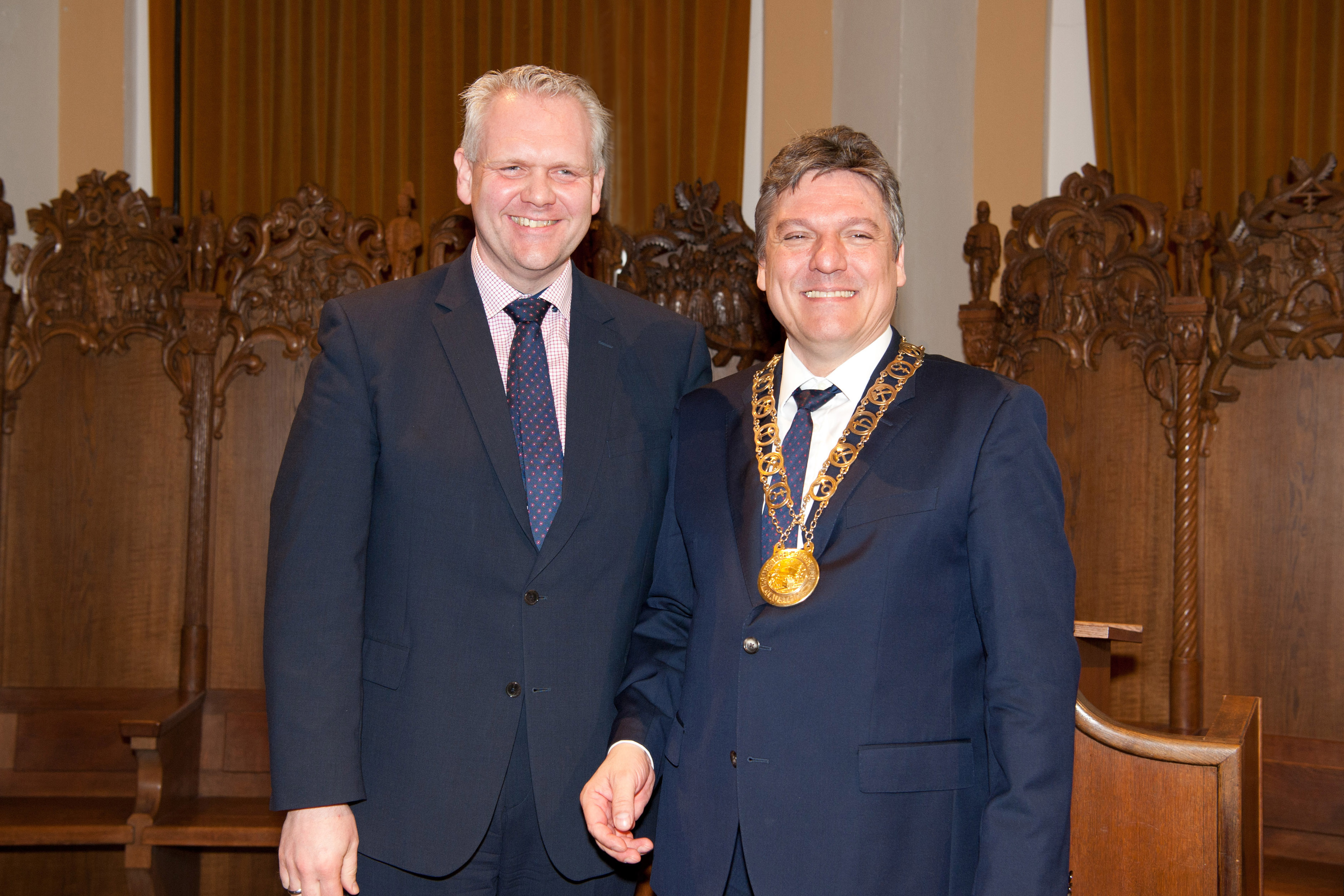 Als äußerlichen Akt legte der Minister dem neuen Universitätspräsidenten in der Aula Academica die Amtskette um und sicherte ihm die Unterstützung seines Hauses zu: „Die TU Clausthal hat in den vergangenen Jahren, begleitet durch das Ministerium, große Anstrengungen unternommen, um sich bestmöglich für die Zukunft aufzustellen. Ein Masterplan wurde erarbeitet. Diese Planungen gilt es jetzt mit Leben zu füllen.” Mit Professor Schachtner habe Niedersachsen und die TU Clausthal einen Präsidenten gewonnen, der erhebliche und langjährige Erfahrungen mit der Gestaltung von Veränderungsprozessen an Hochschulen mitbringe. „Bei der Wahrnehmung seines Amtes wünsche ich ihm eine ruhige Hand sowie die bei der Gestaltung und Moderation der notwendigen Veränderungsprozesse erforderliche Geduld, Einfühlsamkeit und Zielorientierung”, bekräftigte Thümler.