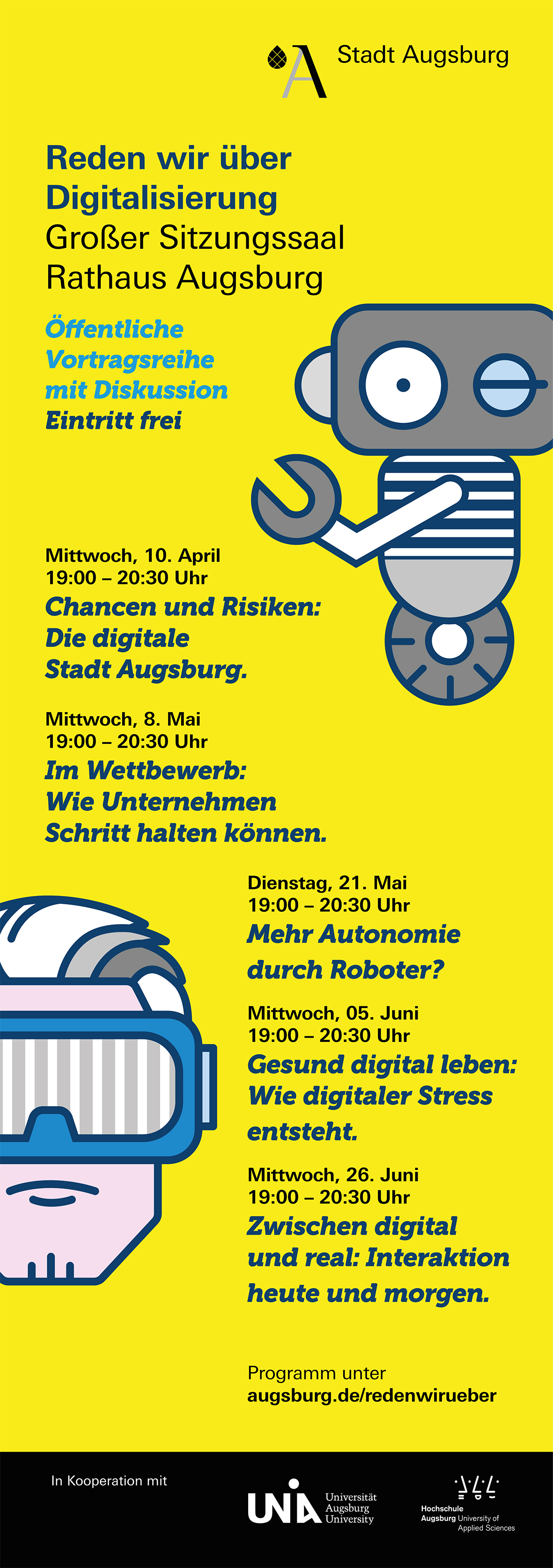 Am 10. April 2019 startet im Augsburger Rathaus eine fünfteilige Vortragsreihe zum Thema Digitalisierung mit Expertinnen und Experten der Universität und der Hochschule Augsburg