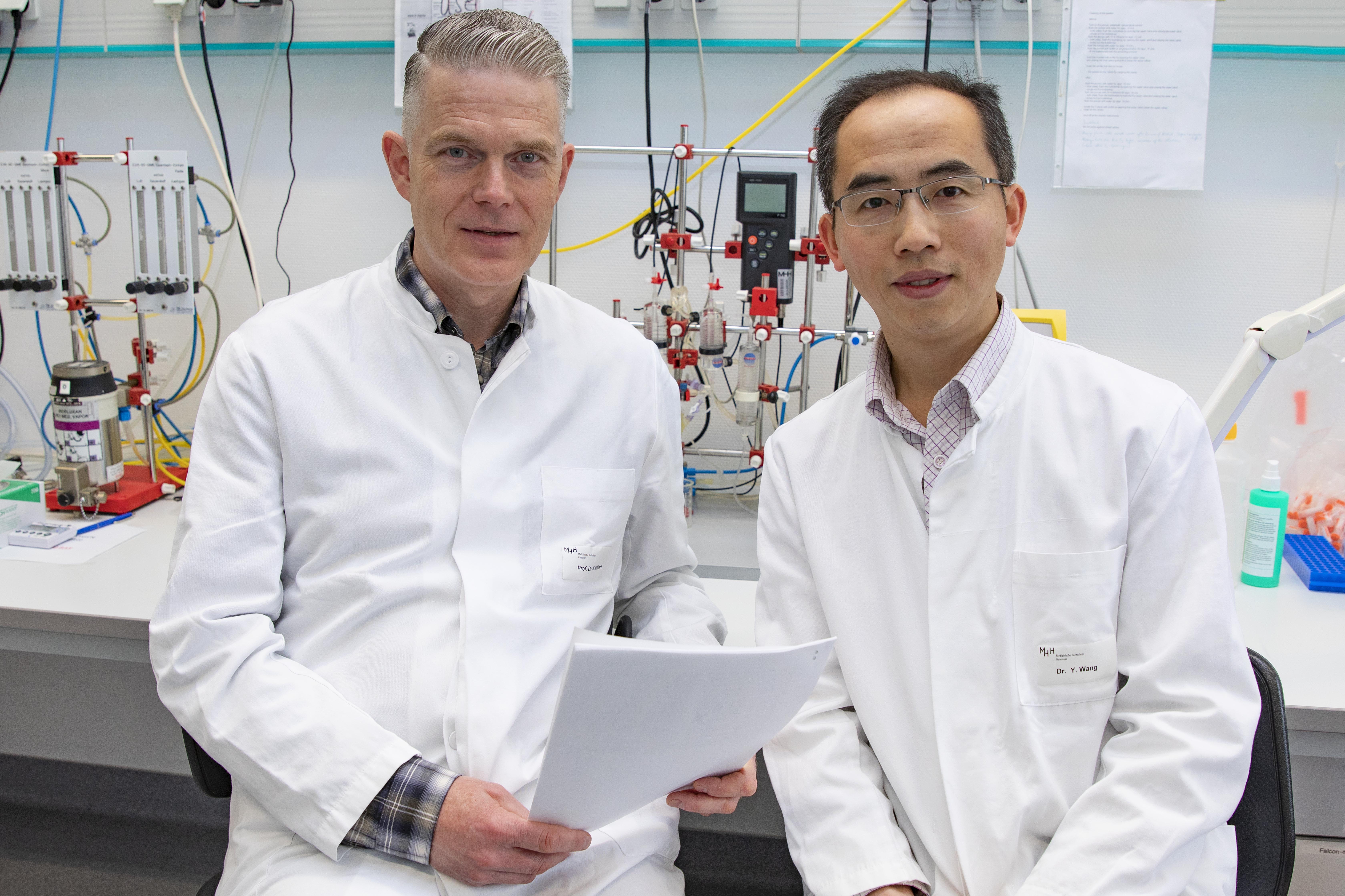 Ein Foto ist angefügt. Es zeigt Professor Dr. Kai Wollert (links) und Dr. Yong Wang, die eine neue Therapie für Herzinfarktpatienten entwickeln wollen. Im Zusammenhang mit dieser Presseinformationen können Sie das Fotokostenfrei nutzen, wenn Sie als Quelle „MHH / Karin Kaiser“ angeben.