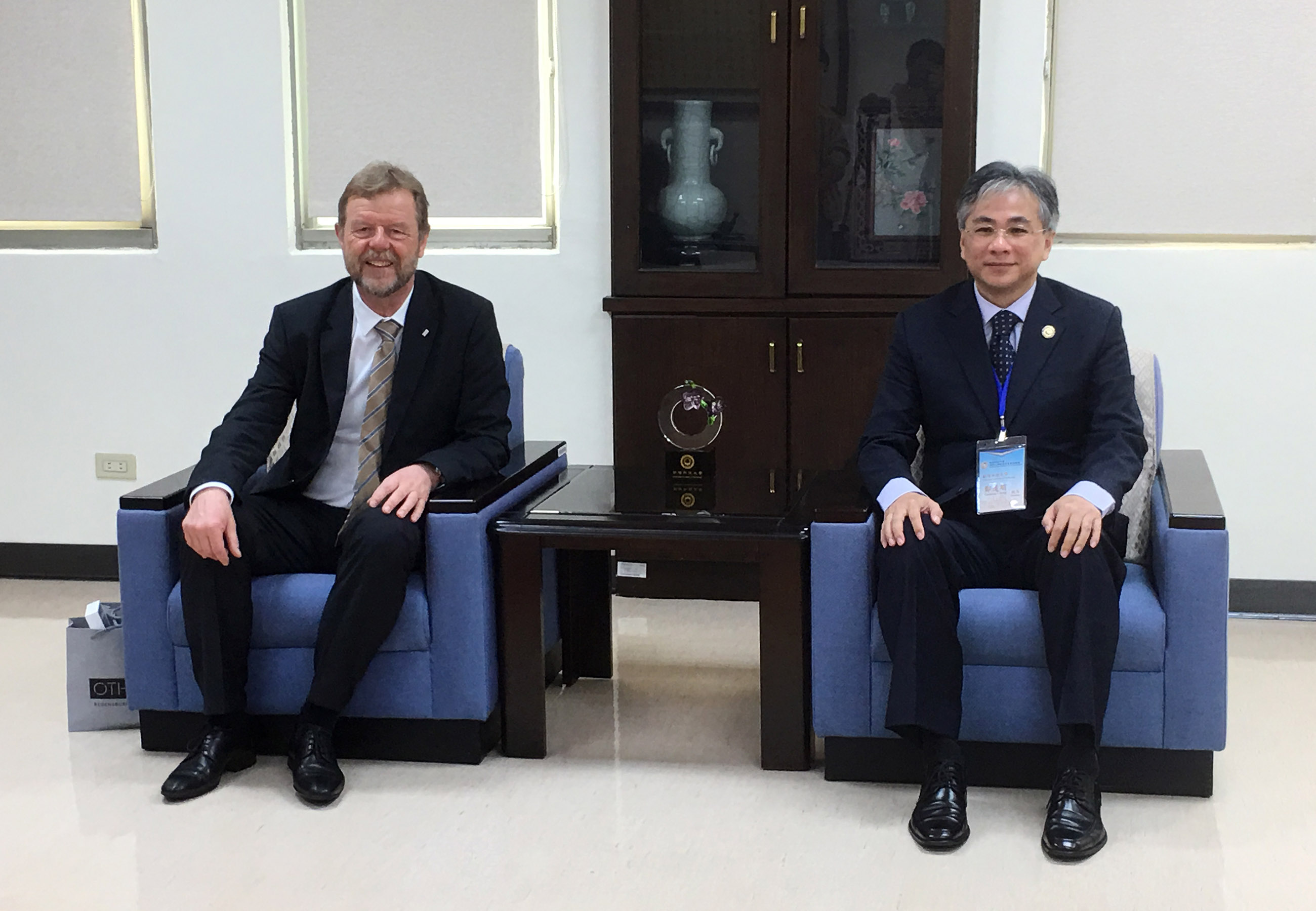 Seit 2009 haben die OTH Regensburg und die Chaoyang University of Technology (CYUT) in Taichung - mit rund 2,7 Millionen Einwohnern Taiwans drittgrößte Metropole - ihre Kontakte zwischen den sozial- und gesundheitswissenschaftlichen Fakultäten und den Informatik-Fakultäten sukzessive ausgebaut. Zur 25-Jahr-Feier der CYUT wurden deshalb Prof. Dr. Wolfgang Baier als Präsident der OTH Regensburg sowie Prof. Dr. Irmgard Schroll-Decker als Vertreterin der Fakultät Angewandte Sozial- und Gesundheitswissenschaften Ende März 2019 nach Taiwan eingeladen. Auf dem dortigen „International Forum of University Social Responsibility“ stellte Präsident Prof. Dr. Baier Konzepte und Aktivitäten der OTH Regensburg zum Thema „Corporate Social Responsibilty (CSR)“ vor. Dazu war er von der CYUT stellvertretend für alle europäischen Partnerhochschulen ausgewählt worden.