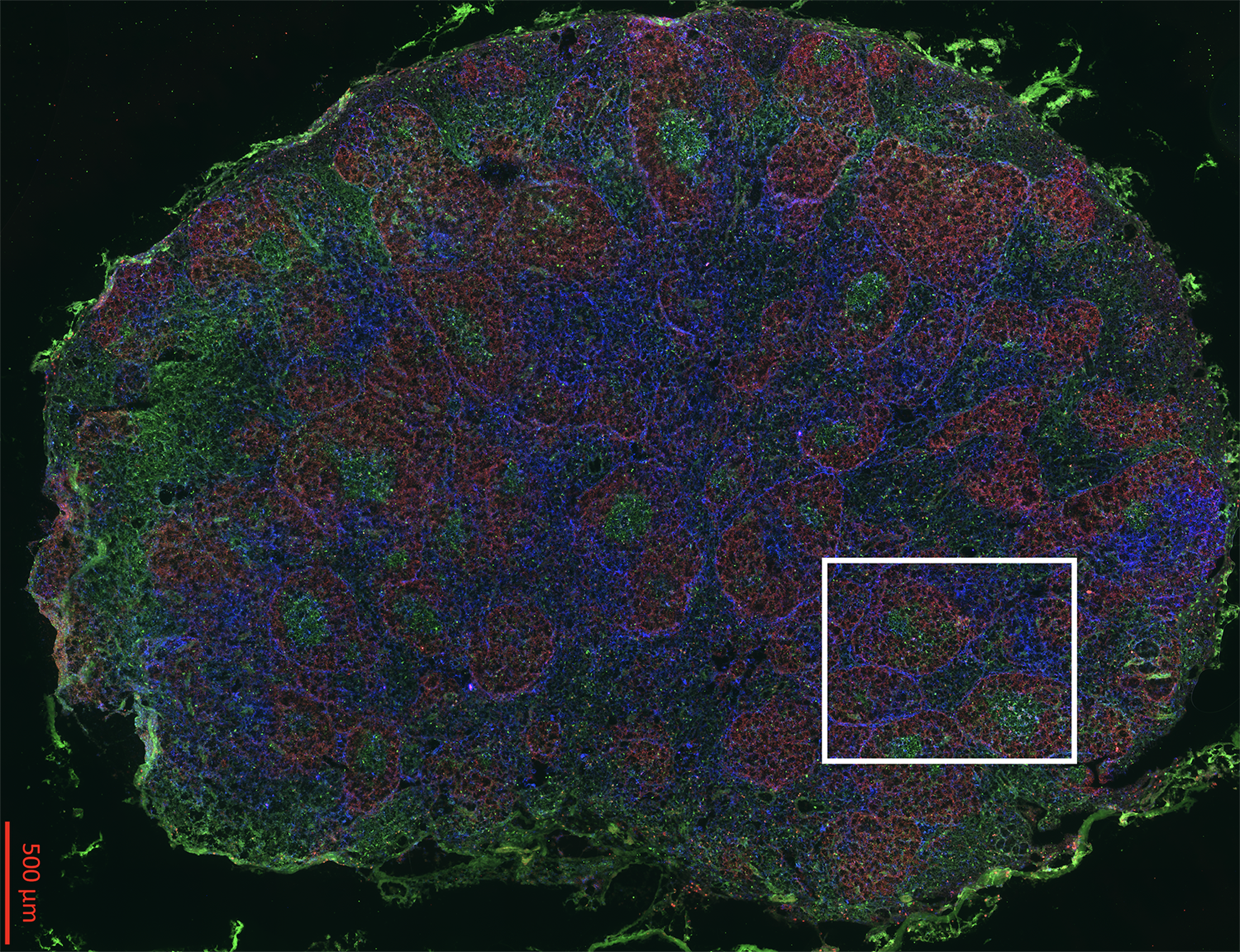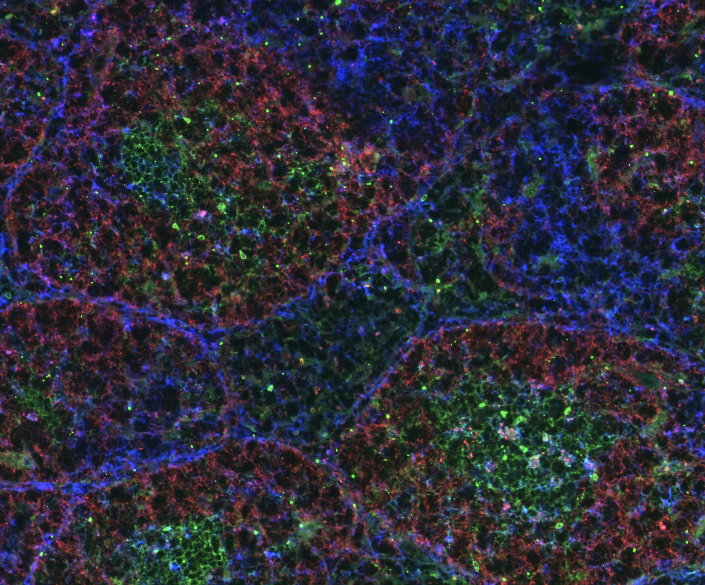 Wenn das Immunsystem außer Kontrolle gerät, führt dies in vielen Fällen zu lebensbedrohlichen Nebenwirkungen. Ein zu aktives, unkontrolliertes Immunsystem kann die Entwicklung von Allergien bis hin zur Selbstzerstörung körpereigener Gewebe (Autoimmunität) verursachen. Im Gegensatz dazu kann ein funktionell eingeschränktes Immunsystem die Anfälligkeit für Infektionskrankheiten und Tumorkrankheiten deutlich erhöhen. Das Aktivierungsniveau des Immunsystems ist somit eine ganz wichtige Stellgröße, um gesund zu bleiben, wobei das Immunsystem die Fähigkeit besitzt, sich selbst zu kontrollieren und auch zu regulieren. Die Selbstregulation des Immunsystem ist daher eine der wichtigsten Komponenten und wird, unter anderem, über eine spezialisierte Immunzell-Population vermittelt: regulatorische T-Zellen. Diese Zellen sind in der Lage, andere Immunzellen zu überwachen und deren Aktivität zu reduzieren. Darüber hinaus können sehr spezialisierte, im Gewebe sitzende (gewebeständige) regulatorische T-Zellen in Organen zur Heilung verletzter Gewebe beitragen, indem diese Zellen Substanzen freisetzen, die die Gewebeheilung vorantreiben. In einer Studie, die nun in der Online-Zeitschrift Nature Communications erschienen ist, haben Immunologen des Regensburger Centrums für Interventionelle Immunologie (RCI) der Universität Regensburg den Einfluss des genregulierenden Faktors Rbpj (engl. „recombination signal binding protein for immunoglobulin kappa J region“), der in den T-Zellen steckt, nun genauer untersucht. Dafür haben sie Rbpj über genetische Verfahren gezielt aus regulatorischen T-Zellen entfernt, um dessen Funktion zu verstehen. So konnten die Wissenschaftler zeigen, dass der Defekt keinen Einfluss auf die Entstehung von regulatorischen T-Zellen hat, aber ihre Funktion spezifisch beeinträchtigt: ein Immunsystem mit Rbpj-freien regulatorischen T-Zellen verliert die Funktion zur Selbstkontrolle, was zu Lymphknotenschwellung mit reaktiven Keimzentren geführt hat (siehe Bild).