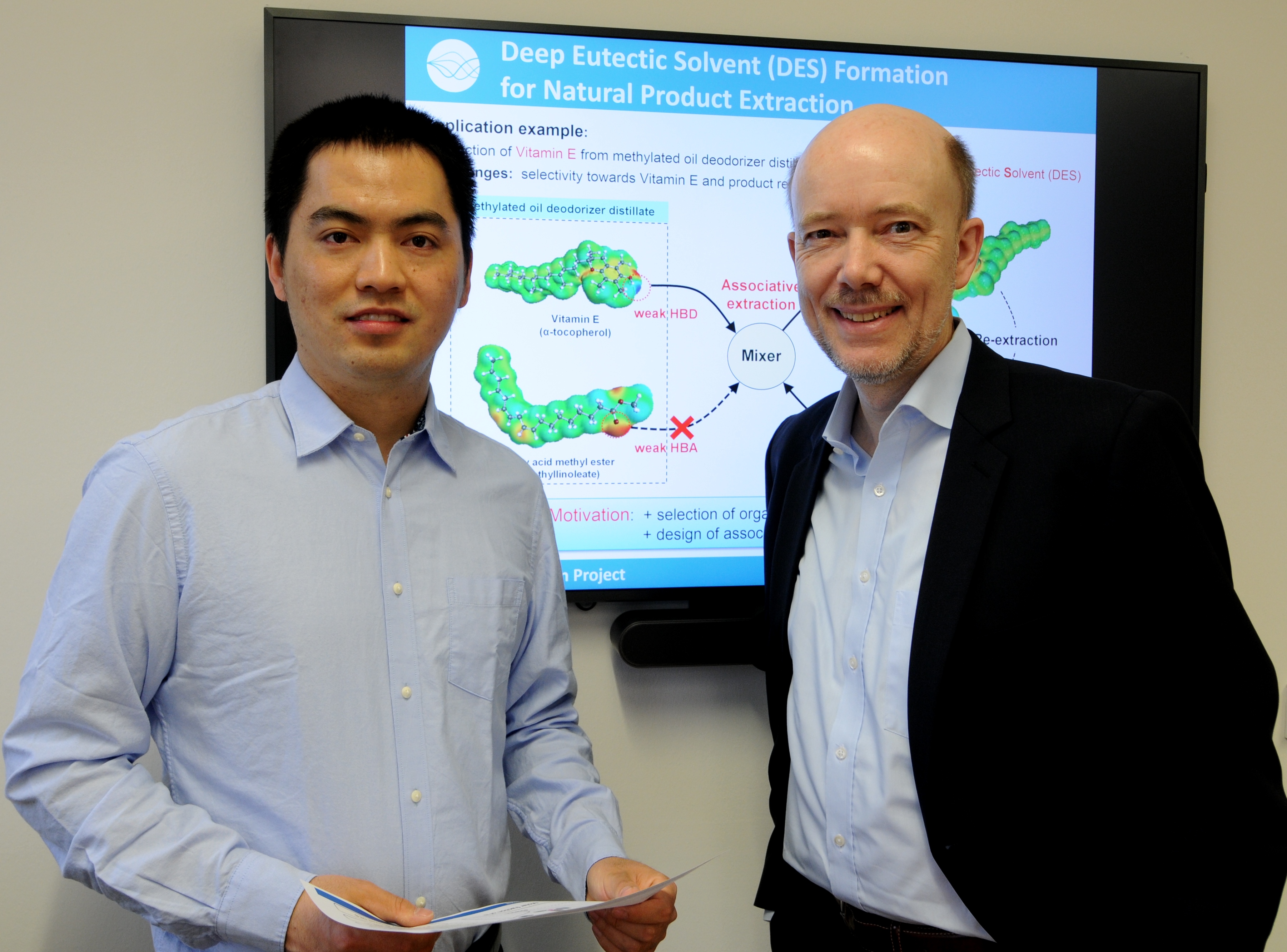 On 1st April 2019, in a joint Sino-German research project, the group of Prof. Dr.-Ing. Kai Sundmacher, Director at the Max Planck Institute for Dynamics of Complex Technical Systems (MPI Magdeburg) and Professor of Otto von Guericke University (OVGU) in Magdeburg, started a close collaboration with the group of Prof. Zhiwen Qi, Professor of the East China University of Science and Technology in Shanghai (ECUST), China. The aim is to extract Vitamin E from deodorizer distillate which is a highly valuable stream from vegetable oil production in China and many other countries. The key idea is to use so called Deep Eutectic Solvents (DES) for this purpose.