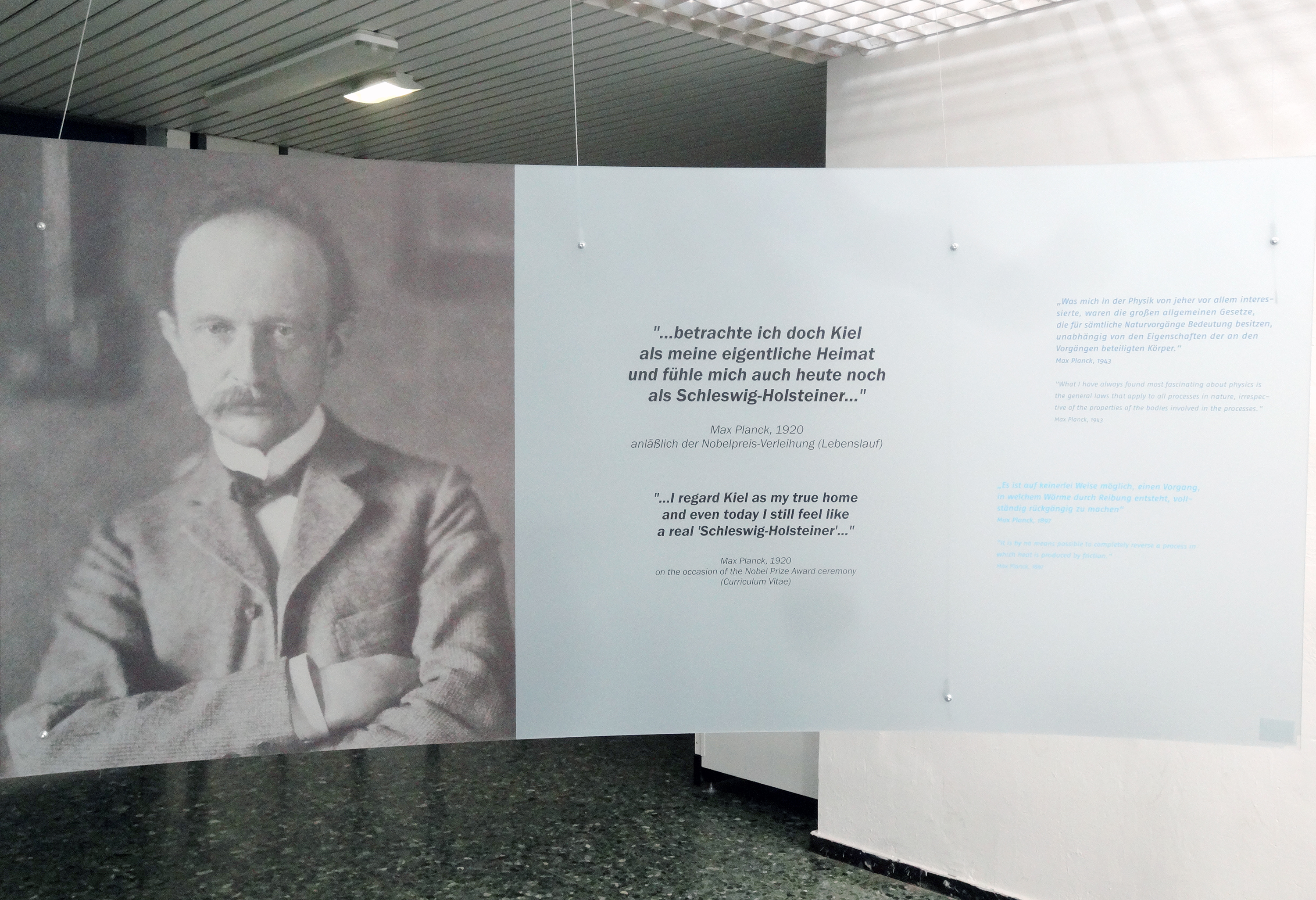 Bildunterschrift: Eine Ausstellung im Physikzentrum der CAU zeigt Arbeit und Leben des Physikers Max Planck. Die Verleihung seines Nobelpreises jährt sich in diesem Jahr zum 100. Mal.