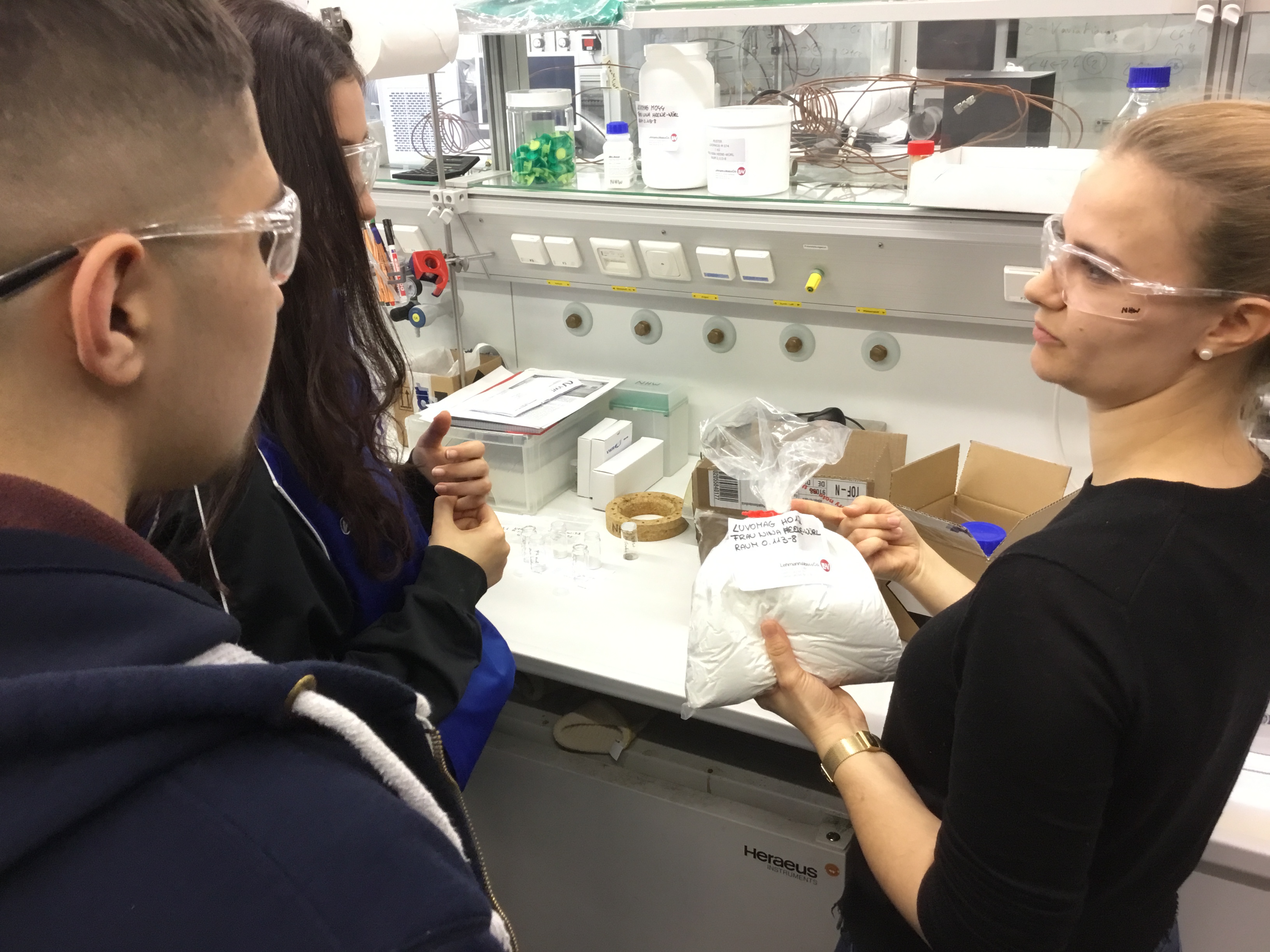 Dieses Treffen mit erfolgreichen Forschern ist der Höhepunkt des Projekts. Leibniz-Preisträger Prof. Dr. Peter Wasserscheid, Lehrstuhl für Chemische Reaktionstechnik, Humboldt-Professor Prof. Dr. Vahid Sandoghdar, Lehrstuhl für Experimentalphysik und einer der Direktoren des Max-Planck-Instituts für die Physik des Lichts (MPL), sowie der Musikwissenschaftler und Lehrstuhlinhaber an der Nürnberger Hochschule für Musik, Prof. Dr. Martin Ullrich, haben die Schüler bereits im März in ihren jeweiligen Laboren besucht. Dabei erhielten die Schüler einen Einblick, wie die Forscher arbeiten, was sie antreibt und welche ungeklärten Fragen sie derzeit beschäftigen. Im April und Mai folgen Besuche bei der FAU-Amerikanistin und Leibniz-Preisträgerin Prof. Dr. Heike Paul, bei Prof. Dr. Gerd Leuchs, FAU-Lehrstuhlinhaber für Experimentalphysik (Optik) und einer der Direktoren des MPL, bei der Genforscherin und Nobelpreisträgerin Prof. Dr. Christiane Nüsslein-Vollhard von der Eberhard Karls Universität Tübingen und bei Prof. Dr. Hanno Sahlmann vom Lehrstuhl für Theoretische Physik III (Quantengravitation) der FAU. Weitere Besuche zu den Themen „Massenvernichtungswaffen“ und „Friedensforschung“ sind in Planung.