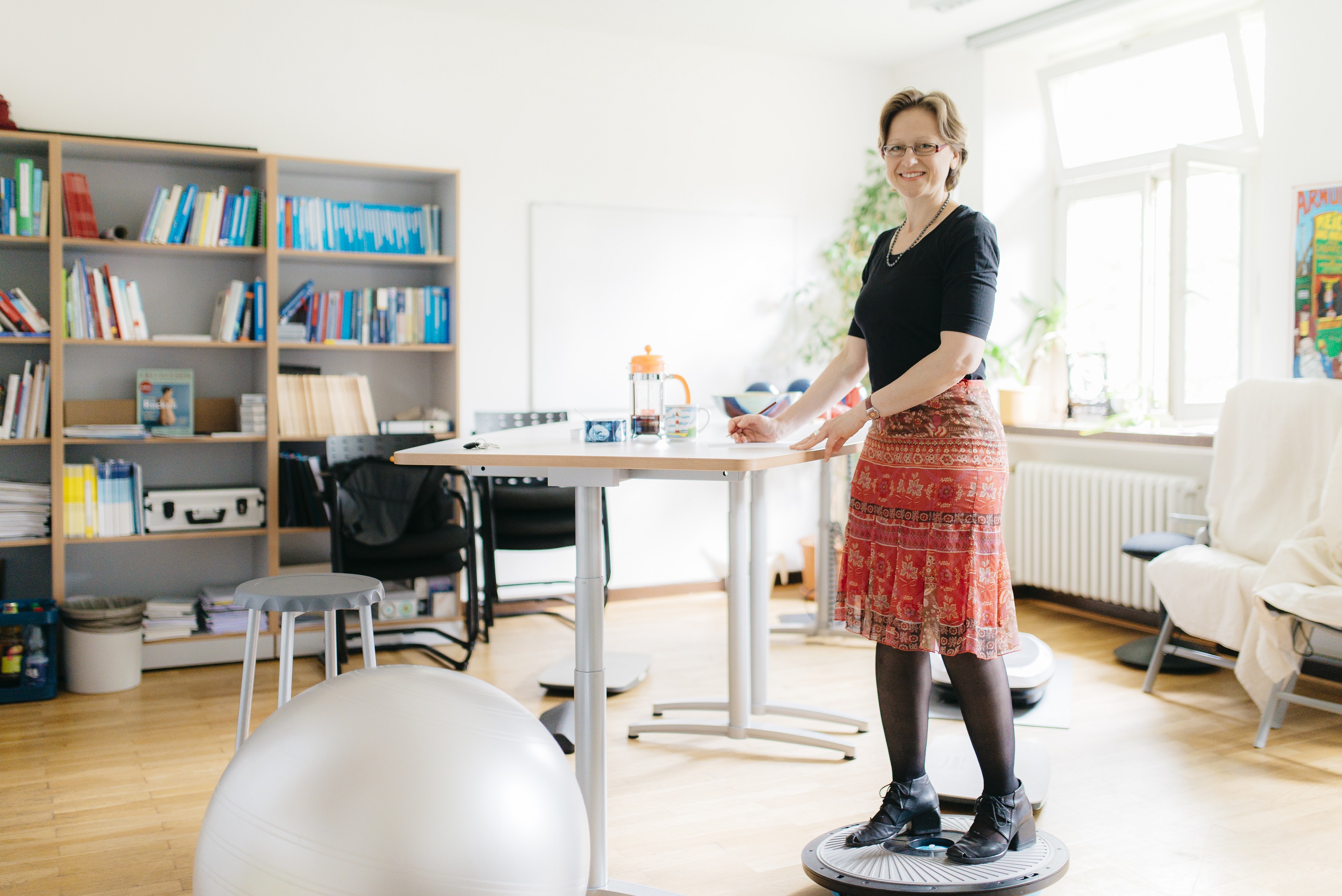 For instance, a lack of physical activity in regular office jobs can be reduced by ergonomically designing the working environment. Tension and pain can be avoided with ergonomic office chairs and variable sit-to-stand solutions such as conference tables. What remains is the question of whether the employees use this type of furniture and the programs on offer regularly. Evidence has shown that old habits die hard and that good intentions often lack long-term implementation. One such example is the intention to stand up after one hour sitting at a desk and to do physical exercises: While the employee may be highly motivated to do so, in everyday working life, however, the individual may fail. This may happen due to situational difficulties such as time pressure and the belief that a break does not fit into the workflow or is not supported by colleagues and superiors. The employee may feel obliged to finish the work while sitting without such a break even in face of anticipated back pain afterwards. If the employee would have a standing desk at hand where he or she could continue working while standing, it would not be necessary to interrupt the work flow in order to change the working posture and strengthen or loosen the muscles.