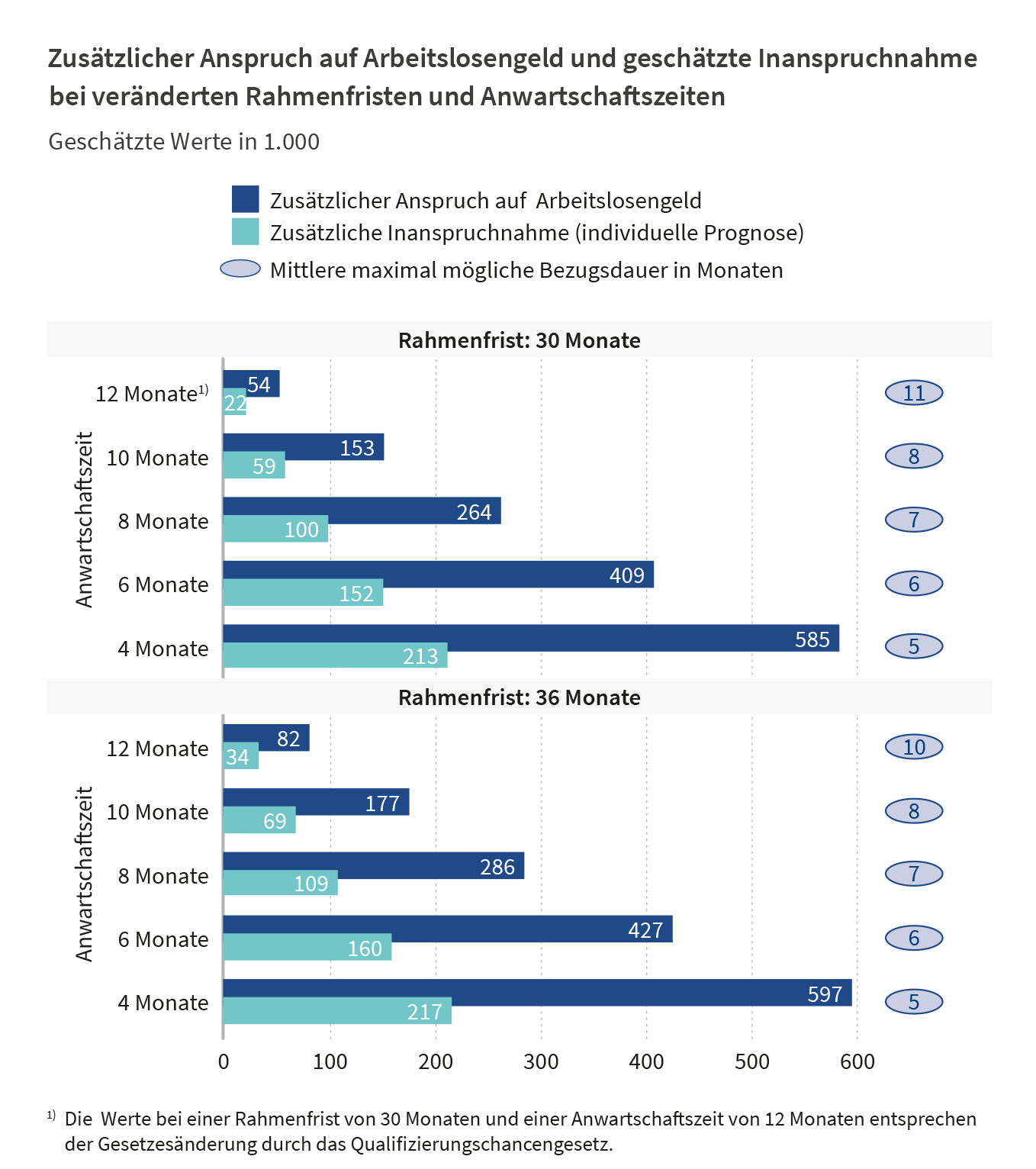 Unter den rund 50.000 Personen in Deutschland, die 2020 einen zusätzlichen Arbeitslosengeld-Anspruch hätten, sind gut 10.000, die ohne die geänderten Anspruchsvoraussetzungen statt dem Arbeitslosengeld nur Arbeitslosengeld II bekämen. Ein Teil von ihnen wird aber auch parallel zum Arbeitslosengeld-Bezug weiter auf das Arbeitslosengeld II angewiesen sein, da ihr Arbeitslosengeld-Anspruch zu niedrig ist, um davon leben zu können.
