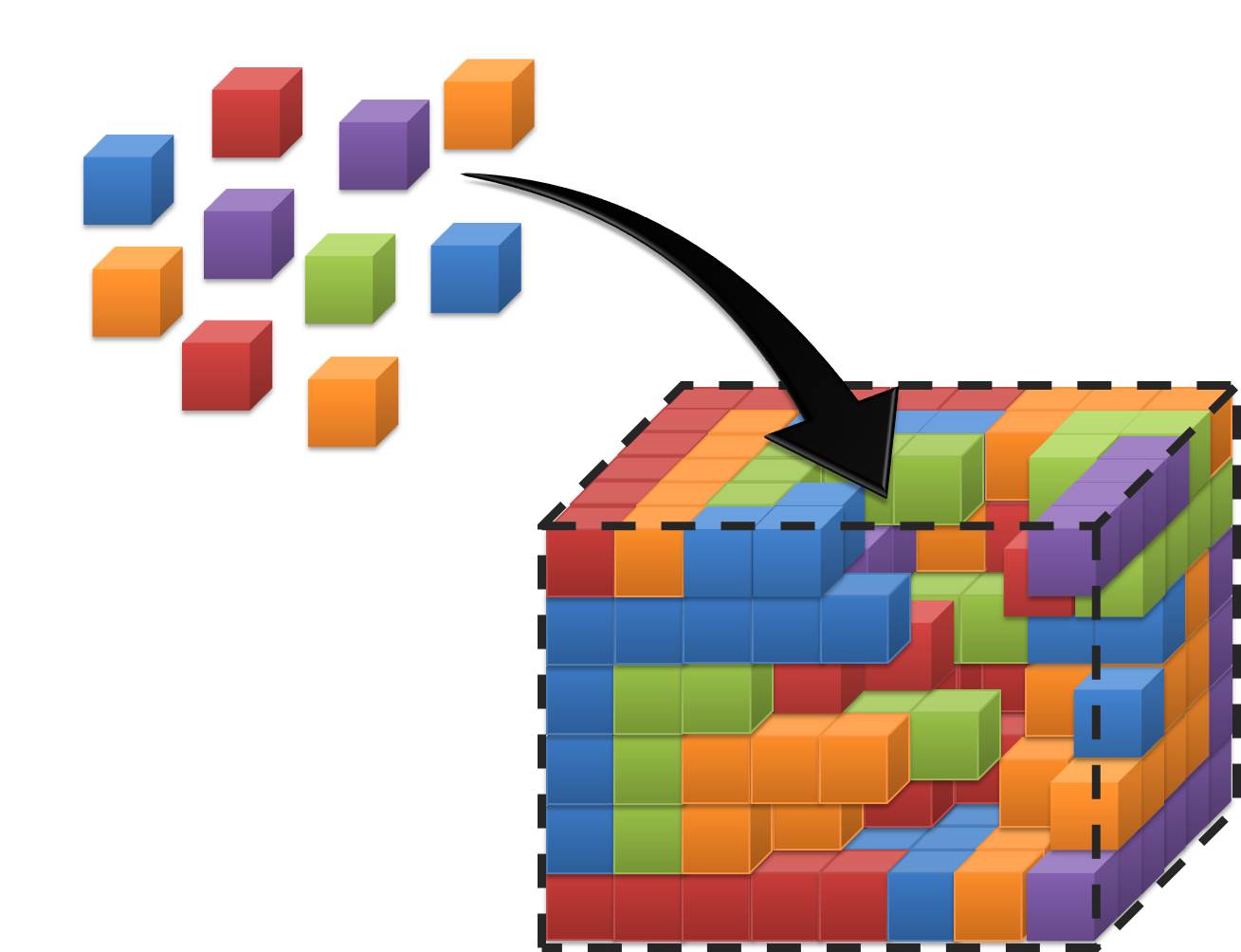 Im Detail sollen anstelle von konventionellen Polymerschmelzen bzw. polymeren Flüssigharzen oder Lösungen partikuläre Ausgangsmaterialien additiv zu funktionalen Produkten verarbeitet werden. Der bausteinartige Ansatz soll dabei insbesondere dazu dienen, Polymerbauteile aus chemisch und physikalisch deutlich unterschiedlichen Ausgangsmaterialien mit mikroskopischer Präzision zusammenzusetzen, was unter Verwendung flüssiger Ausgangsmaterialien