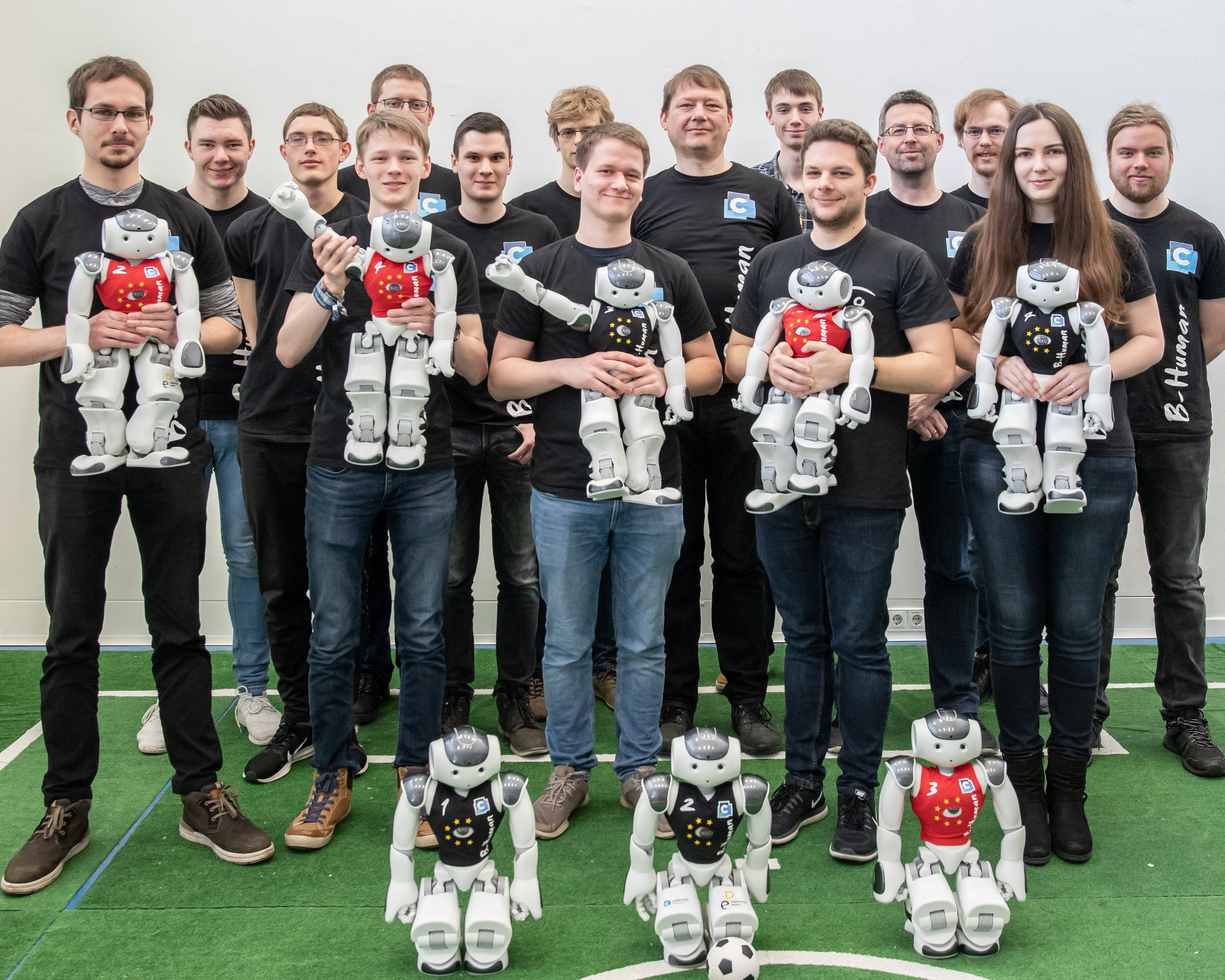 Aktuell setzt sich das Team B-Human aus etwa 15 Studierenden der Universität Bremen sowie den betreuenden Wissenschaftlern Dr. Thomas Röfer vom DFKI-Forschungsbereich Cyber-Physical Systems, der von Prof. Dr. Rolf Drechsler geleitet wird, und Dr. Tim Laue von der Universität Bremen zusammen. Die Firma CONTACT Software, der führende Anbieter von Lösungen für den Produktprozess und die digitale Transformation, ist seit 2017 Hauptsponsor von B-Human.