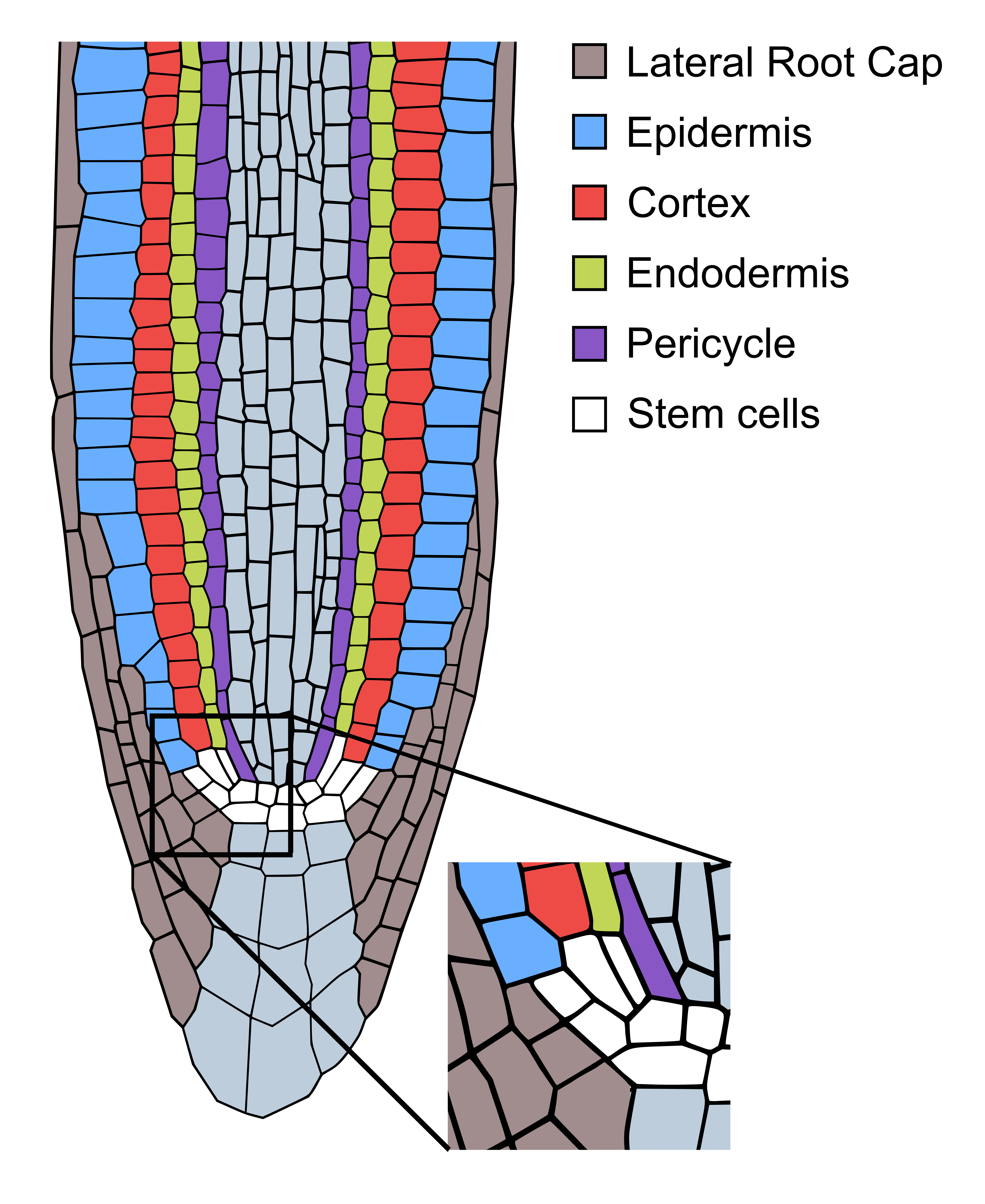 Weiters konnten die ForscherInnen mittels genetischer Markierung zeigen, dass die neu produzierten Zellen die an der Seite der Wunde entstanden, den Zelltyp der zu ersetzenden Zellen annahmen. Galt es zum Beispiel für eine Endodermiszelle eine benachbarte Cortexzelle zu ersetzen, erwarb die Tochterzelle den „richtigen“ Zelltypus einer Cortexzelle. Demnach sind diese „Heilungszellen“ in der Lage, sich asymmetrisch zu teilen, also Tochterzellen unterschiedlichen Zelltyps als jener der Mutterzelle zu produzieren – ein Vorgang, der klassischerweise ausschließlich in der Stammzellnische der Wurzel vorkommt, jener Region, in der Stammzellen spezialisierte Zellen hervorbringen.