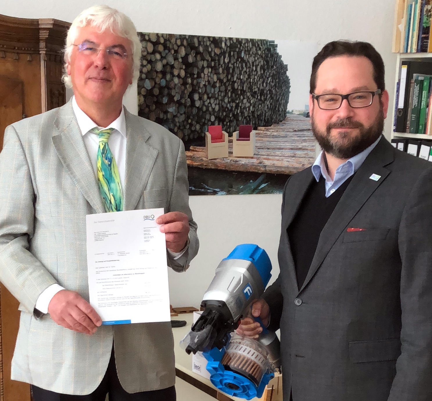 „Eine umweltfreundlichere Zusammensetzung der Holznägel und breitere Anwendung haben das Potenzial, den Rohstoffverbrauch zu senken und damit negative Umweltauswirkungen zu verringern“, unterstrich DBU-Generalsekretär Alexander Bonde jetzt bei der Übergabe des Bewilligungsschreibens in Wismar. So würden allein für eine Europalette 78 Stahlnägel mit einem Gewicht von einem halben Kilo benötigt. Bei jährlich rund 400 Millionen gefertigten Paletten kämen dabei rund 200.000 Tonnen Stahl zum Einsatz. Korte: „Von ihrer Herstellung über den Gebrauch bis hin zum Nachnutzen, bereits heute sind uns viele Vorteile der hölzernen Alternative bekannt. Beispielsweise können die Holznägel energiesparender hergestellt werden und sind leichter, was vor allem bei Transportverpackungen wie Paletten weitere Rohstoffe einspart.“