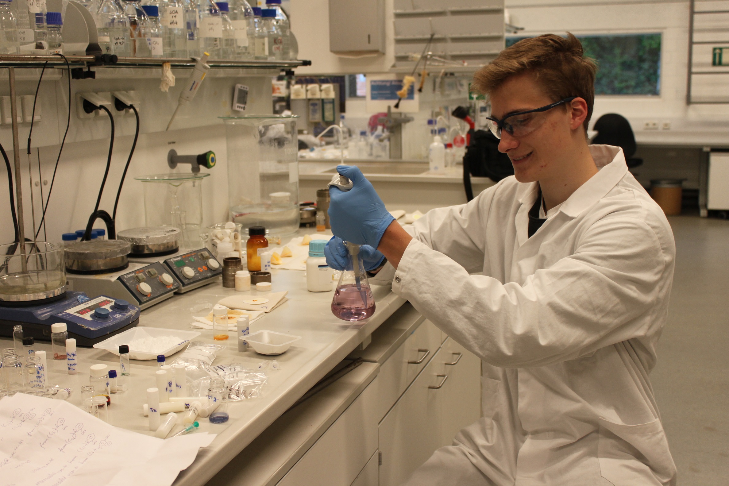 Bei dem Verfahren wird der Magnet aufgelöst und das Neodym aus dem Magneten in ein anorganisches, donutförmiges Wirtmolekül (Polyoxometallat) mithilfe supramolekularer Wechselwirkung reversibel eingebaut, das heißt, es kann daraus auch wieder zurückgewonnen werden. „Der größte Durchbruch in den letzten Wochen war, das anorganische Wirtmolekül in einen katalytischen Kreislauf zu überführen, so dass es immer wieder verwendet werden kann“, erzählt Jan, der im ersten Jahr Chemie (BSc) studiert und nebenbei unter Anleitung eines erfahrenen Doktoranden auch bei Prof. Ulrich Kortz im Labor forscht. Seine Freizeit verbringt Jan am liebsten mit Freerunning und Parkour, unter anderem als Trainer einer Kindergruppe in Buchholz.