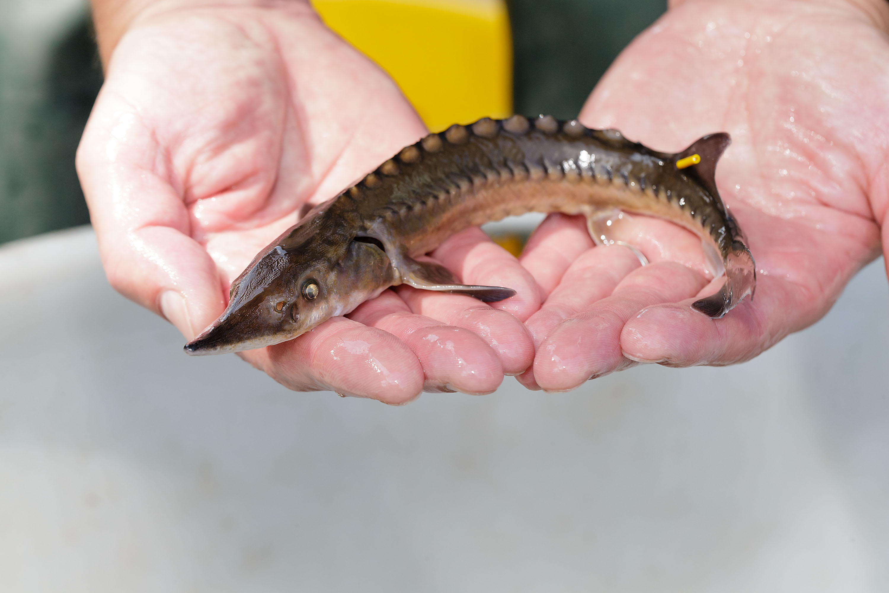 Like a vacuum cleaner, sturgeons pick up their prey from the bottom of the watercourse: