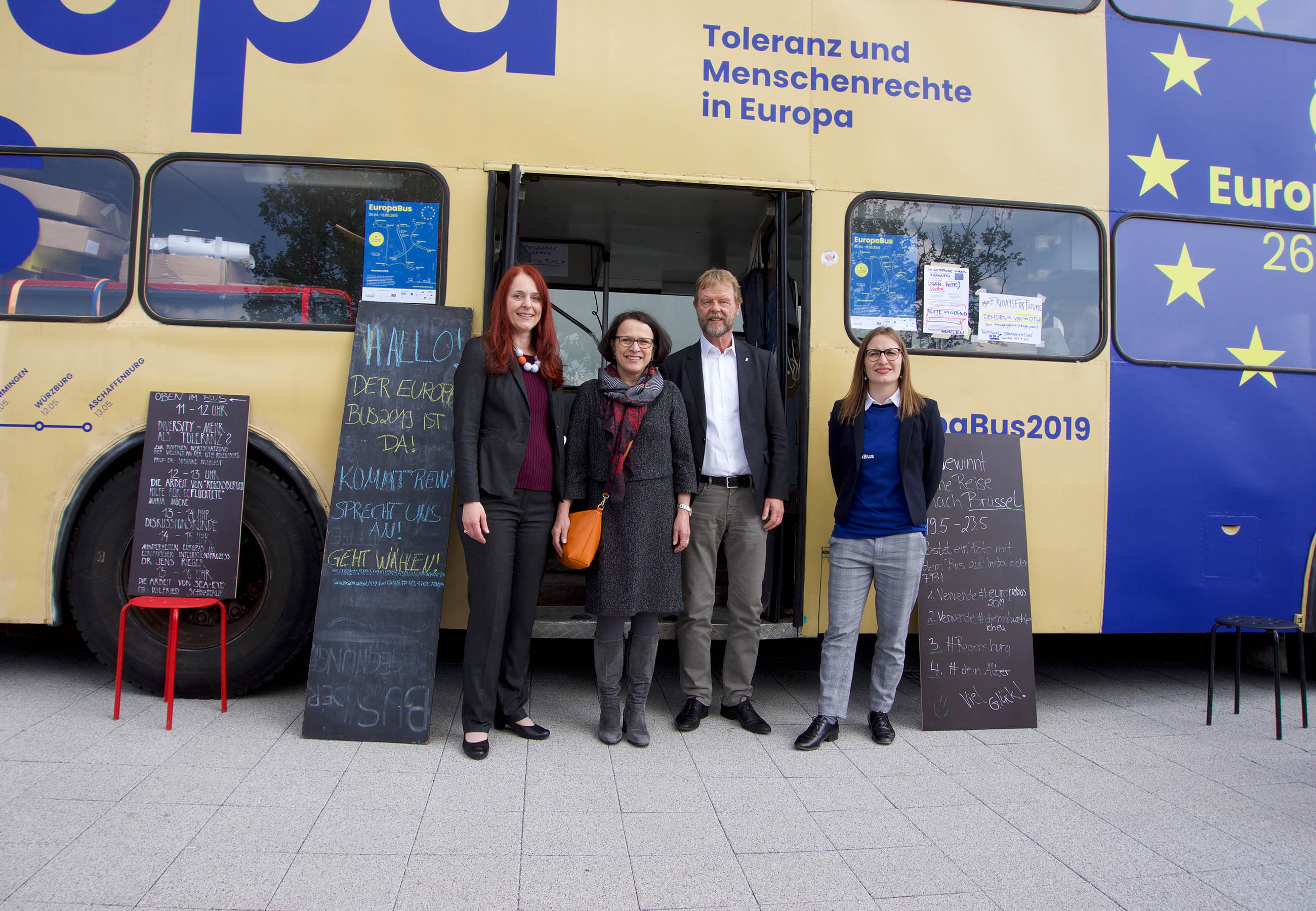 Beim EuropaBus handelt es sich um einen alten doppelstöckigen Berliner Stadtbus der Linie 94. Während der zweiwöchigen Tour durch den Freistaat werden in seinem Inneren Vorträge abgehalten sowie Filme gezeigt; die Sitzmöglichkeiten laden zu Diskussionen rund um das Thema Europa ein. Weitere Informationen zum Programm finden Sie unter: www.europabus.org