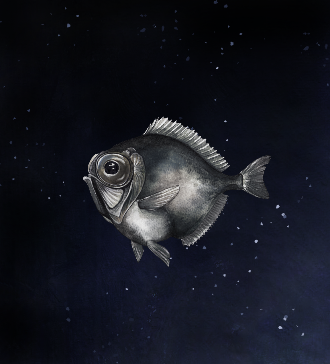 The deep sea is the largest habitat on Earth and yet one of the least explored due to its inaccessibility. Many organisms have adapted to life in the near-total darkness of this inhospitable environment. For example, many fish have developed highly sensitive telescope eyes that allow them to detect the tiny amount of residual light that makes it to the depths of the ocean.