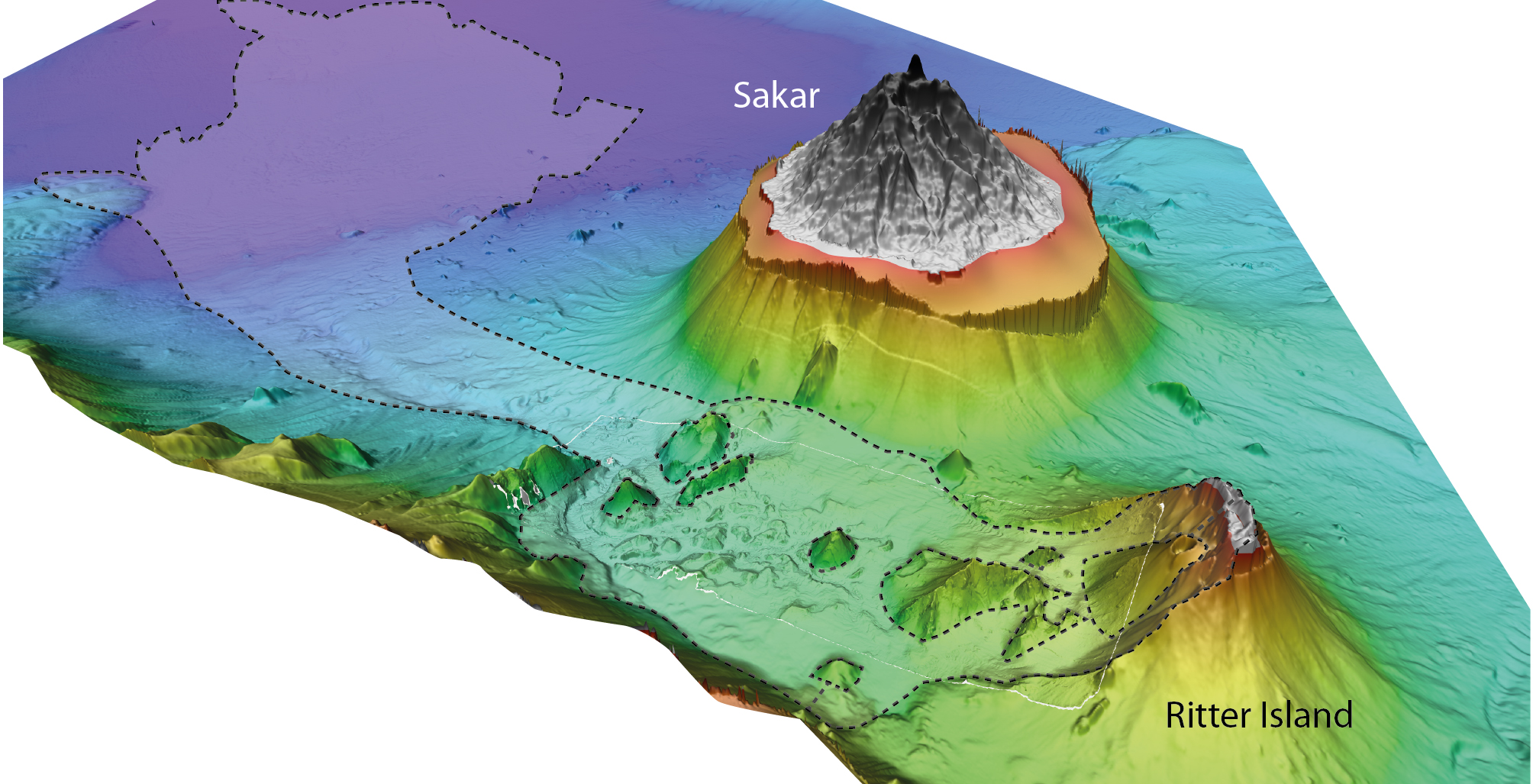 Die Flanken vieler Inselvulkane wie zum Beispiel des Ätna oder des Kilauea rutschen sehr langsam Richtung Meer. Ob diese Rutschungen Vorboten eines katastrophalen Kollapses sind oder im Gegenteil dessen Risiko sogar verringern, ist nicht geklärt. Geophysiker des GEOMAR Helmholtz-Zentrums für Ozeanforschung Kiel haben jetzt in der internationalen Fachzeitschrift Earth and Planetary Science Letters eine Studie veröffentlicht, die zeigt, dass bei der kleinen Vulkaninsel Ritter Island in Neuguinea sporadische, langsame Rutschungsbewegungen einem katastrophalen Kollaps vorangingen.