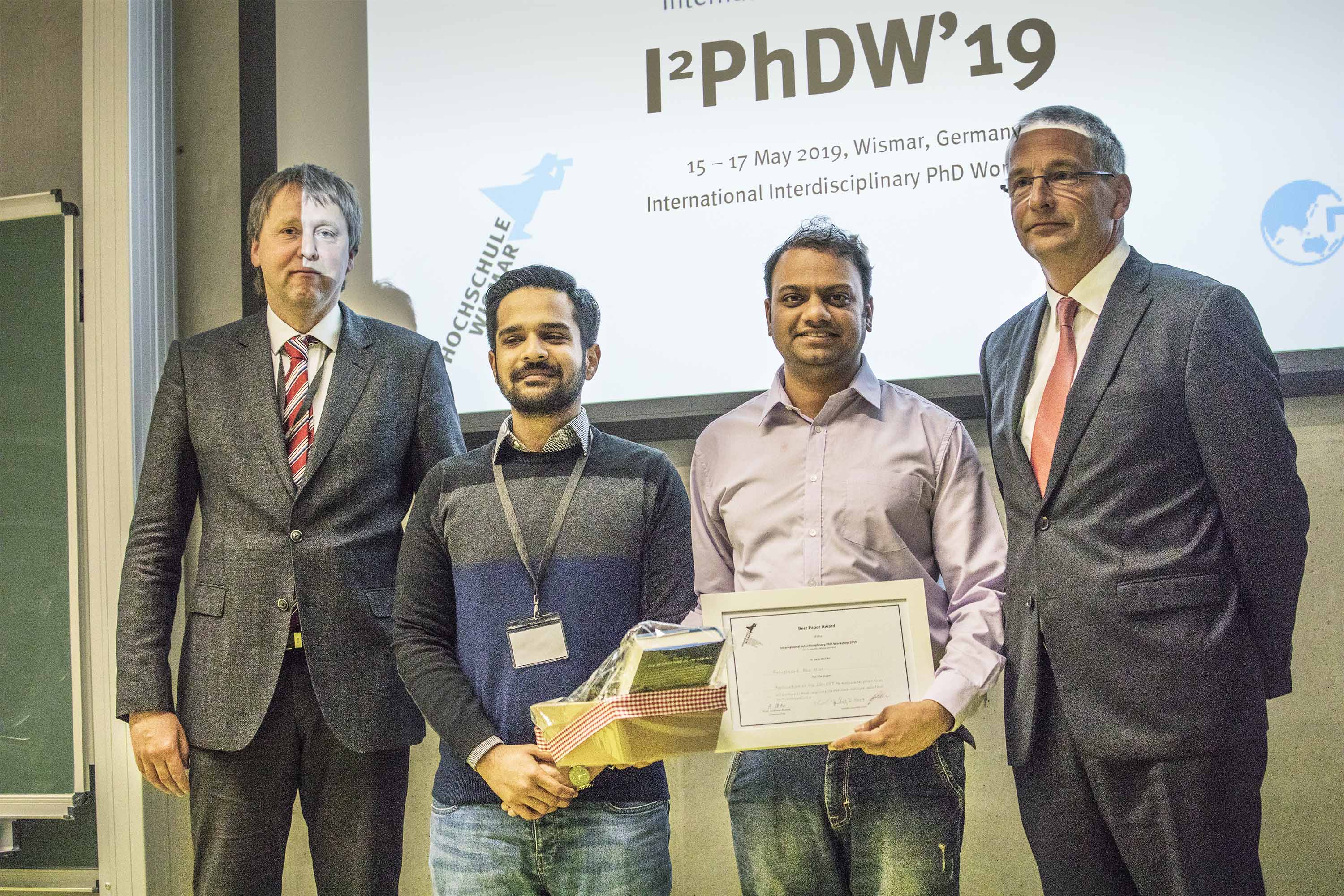 46 Doktoranden und Postdocs von zehn Hochschulen haben sich im Vorfeld mit ihrer Veröffentlichung um eine Teilnahme an der internationalen Konferenz „I2PhDW‘19“ an der Hochschule Wismar beworben. 29 von ihnen wurden ausgewählt, um ihre aktuellen wissenschaftlichen Arbeiten präsentieren und diskutieren zu können. Die Leiter des wissenschaftlichen Konferenzkomitees mit Professoren der Hochschule Wismar sowie aus Krakau und Lublin haben aus allen vorgestellten Arbeiten die Veröffentlichung „Application of the 2D-ERT to evaluate phantom circumscribed regions in various sucrose solution concentrations“ (Anwendung der 2D-Widerstandstomographie zur Untersuchung umhüllter Regionen in Lösungen verschiedener Saccharose Konzentrationen), mit dem Best Paper Award ausgezeichnet. Mit dem vorgestellten Verfahren ist es möglich den Kristallisierungsprozess u. a. bei der Zuckerherstellung lokal zu beobachten. Dies ist bei der Herstellung von Lebensmitteln und pharmazeutischen Produkten von Bedeutung. Die Veröffentlichung wurde von Guruprasad Rao, der an der Lodz University of Technology promoviert, präsentiert.