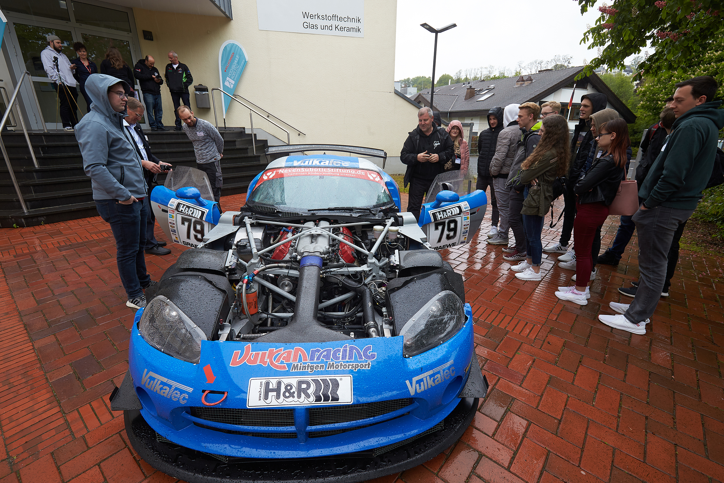 Unter dem Motto „mit Vollgas Richtung Zukunft“ führte das Programm nicht nur durch die Laboratorien und Werkstätten, sondern verdeutlichte auch anhand von zwei Dodge Viper Rennfahrzeugen die Bedeutung der Keramik für die Automobilindustrie. Dass auch die Forschung ein wichtiger Bestandteil des Campus in Höhr-Grenzhausen ist, zeigten die Erklärungen an den aktuellsten Analysegeräten. Auch das Deutsche Institut für Luft- und Raumfahrt war Vorort und zeigte neueste keramische Entwicklungen. Die Firma Gunt sorgte für eine imposante Präsentation der Industrie 4.0.