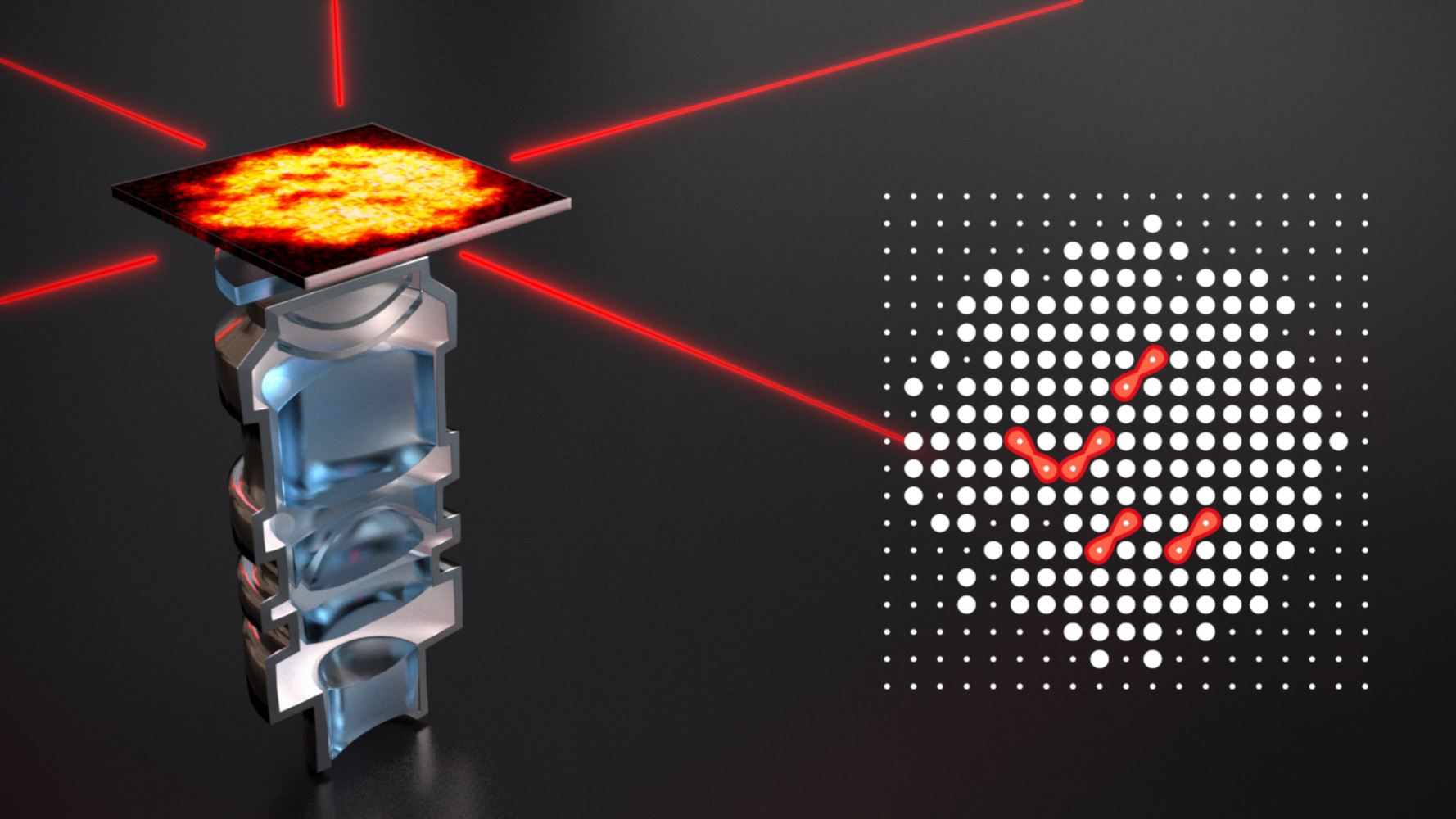 Im Experiment starteten die Physiker mit einem zweidimensionalem Atomgitter mit einem Gitterabstand von 0.53 µm, in dem jeder Gitterplatz mit genau einem Atom besetzt ist. Das Gitter wird hierbei mithilfe einer Überlagerung von Laserstrahlen erzeugt und hält die anfänglichen Grundzustandsatome fest. Da die erzeugten Moleküle vom Gitter abgestoßen werden, lässt eine Molekülanregung zwei leere Gitterplätze im Abstand der Bindungslänge - in diesem Fall der Abstand einer Gitterdiagonalen – zurück. Anschließend wird die verbleibende Atombesetzung des Gitters mit einem hoch auflösenden Objektiv optisch detektiert und Moleküle als korreliert unbesetzt auftretende Gitterplätze identifiziert. Mithilfe dieser mikroskopischen Detektionsmethode konnte zusätzlich gezeigt werden, dass die angeregten Moleküle der unterschiedlichen Resonanzlinien jeweils abwechselnd vermehrt parallel und senkrecht zur Polarisation des anregenden Laserlichtes orientiert sind. Der Grund hierfür ist ein ebenfalls von der Theorie vorhergesagter Interferenzeffekt, der sowohl auf der elektronischen Struktur des Moleküls als auch dem Vibrationsfreiheitsgrad des Moleküls beruht.