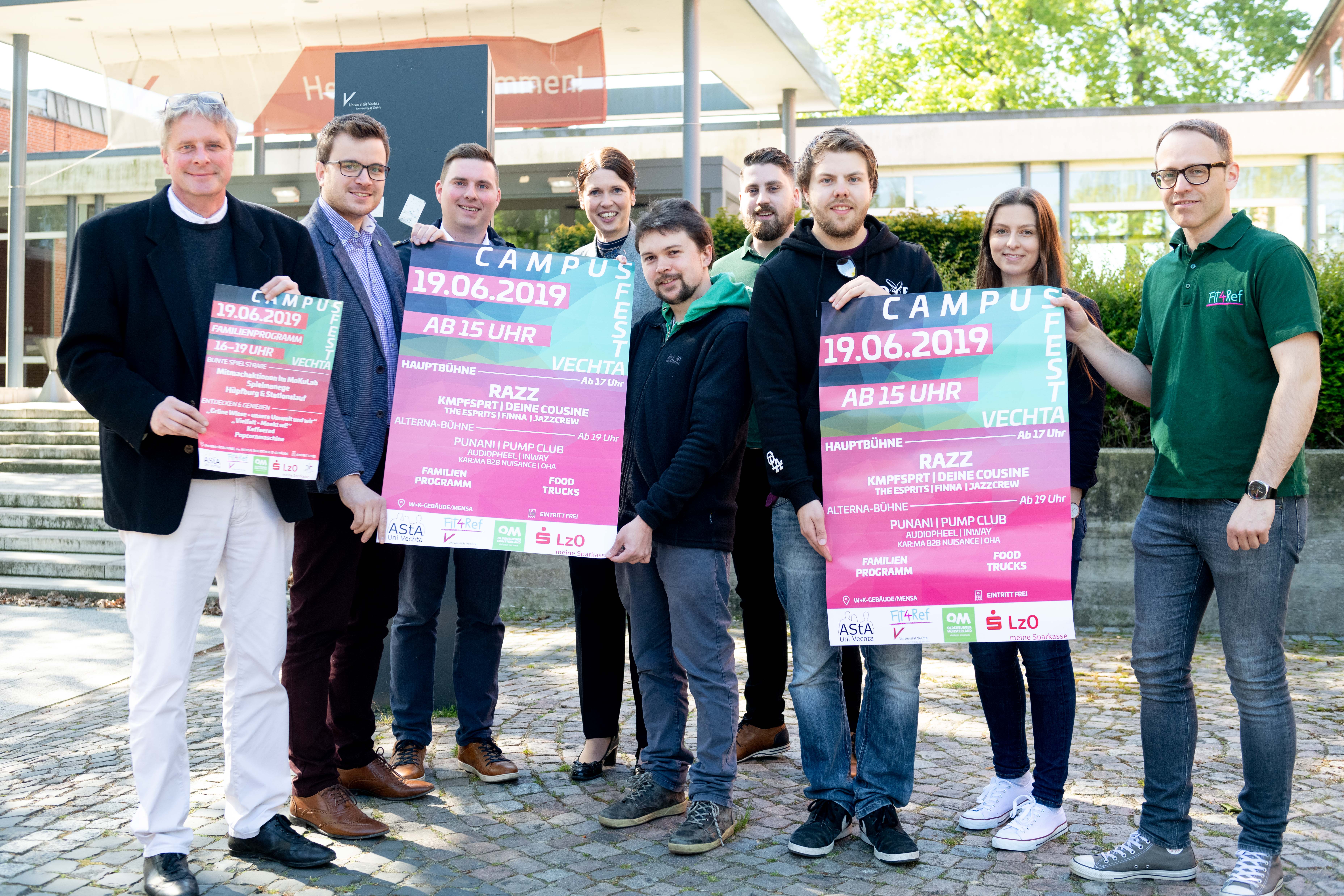 Zum fünften Mal kooperieren die Universität Vechta und ihre Studierendenvertretung, der AStA, beim Campusfest: Am Mittwoch, 19. Juni 2019, verwandelt sich der Campus entlang der Universitätsstraße wieder zum Festivalgelände. Auf der Hauptbühne beim W+K-Gebäude erwarten sechs Live-Acts die Besucher*innen. Die Alterna-Bühne zwischen Mensa und Bibliothek wird von sechs DJs bespielt. Ab 15.00 Uhr sind die Food Trucks auf dem Gelände geöffnet. Das Familienprogramm von 16.00 bis 19.00 Uhr rund um die Mensa und auf der abgesperrten Universitätsstraße lockt mit bunten Mitmachaktionen für Klein und Groß.