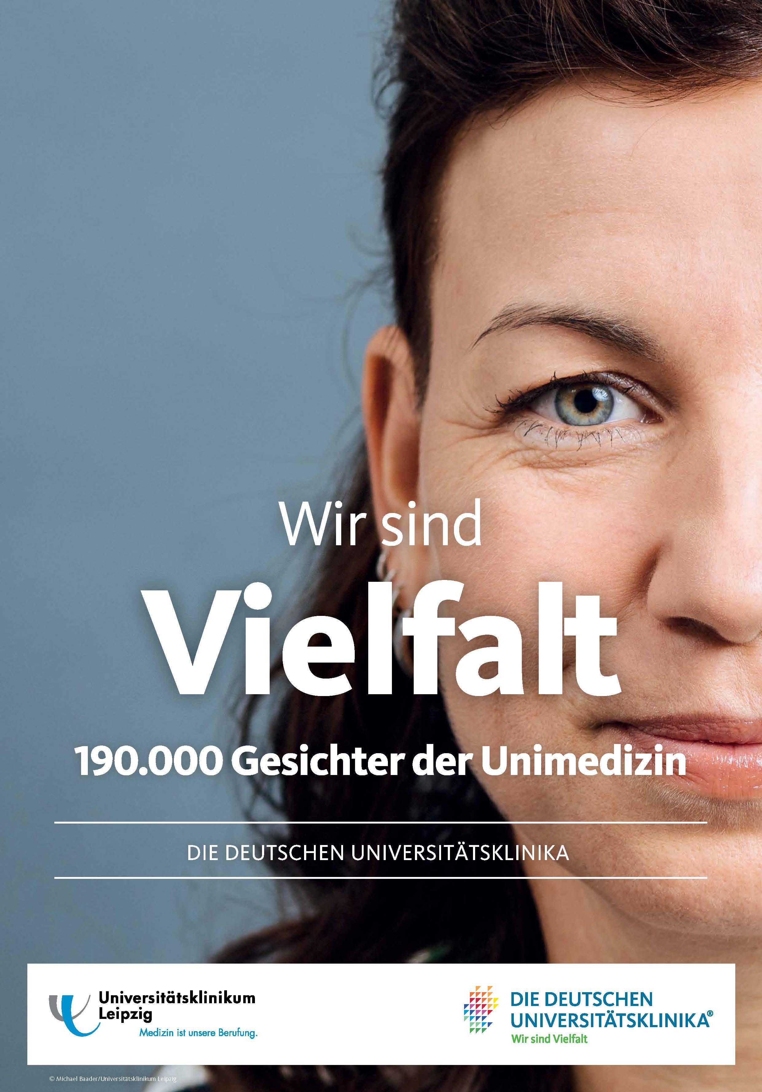 Mit einer deutschlandweiten Aktion setzen die „Deutschen Universitätsklinika“ ein sichtbares Zeichen für Vielfalt, Toleranz und Offenheit. Dazu werden am „Diversity-Tag“ am 28. Mai Plakate ausgehängt und haushohe Banner mit Porträts von realen Mitarbeiterinnen und Mitarbeitern an den Gebäuden der Unikliniken gehisst. Sie symbolisieren die Vielfalt der Mitarbeiterinnen und Mitarbeiter. Die Geschichten der Menschen auf dem Banner werden ab diesem Tag auf verschiedenen Kanälen verbreitet. Es geht um ihre beruflichen Herausforderungen an einer Uniklinik, die Zusammenarbeit in Teams, aber auch um Persönliches wie Herkunft und Lebenskonzepte.