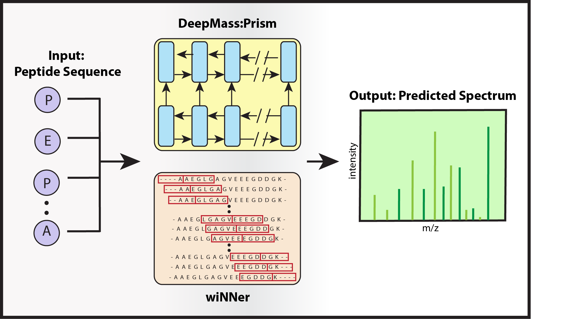 In cooperation with Verily, the life sciences company of Alphabet, researchers at the MPIB have now developed the model DeepMass:Prism to facilitate the interpretation of mass spectrometry spectra., They used machine learning to train algorithms to “translate” proteins into MS spectra. The translation of these abstract data is challenging for artificial intelligence and best performed by “deep learning” algorithms. Similar deep learning approaches are used in the automatic translation of languages. But rather than translating from English to German or vice versa, DeepMass:Prism is trained to translate between proteins and the spectra that are usually generated in MS analysis.