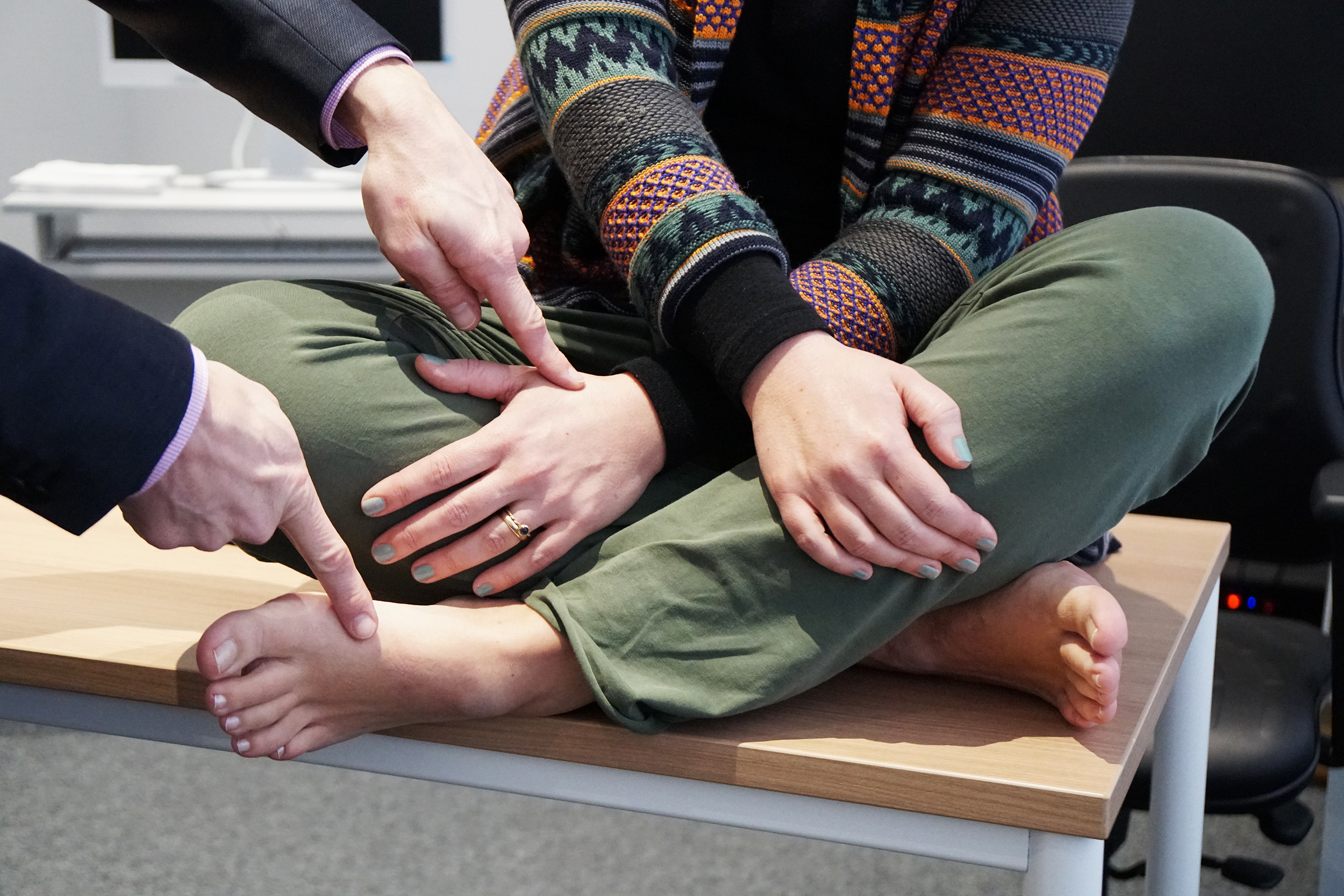 „Wenn Körperteile sich auf einer anderen Seite als üblich befinden – etwa wenn die Beine überkreuzt liegen – geraten die beiden Koordinatensysteme in Konflikt.“ Das externe Koordinatensystem verortet dadurch zum Beispiel das linke Bein auf der rechten Seite – und das passt nicht zur im Gehirn abgespeicherten Körperseite des Beins. „In unserer Studie wollten wir klären, welche Rolle die anatomische Wahrnehmung des Gehirns und welche Rolle die räumliche Wahrnehmung spielt“, sagt Heed.