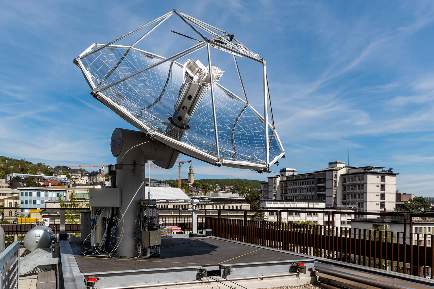 «Mit dieser Anlage beweisen wir, dass die Herstellung von nachhaltigem Treibstoff aus Sonnenlicht und Luft auch unter realen Bedingungen funktioniert», erklärt Aldo Steinfeld, Professor für Erneuerbare Energieträger an der ETH Zürich, der die Technologie mit seiner Forschungsgruppe entwickelt hat, und betont die Besonderheit der Anlage: «Das thermochemische Verfahren nutzt das gesamte Sonnenspektrum und läuft bei hohen Temperaturen ab. Dies ermöglicht schnelle Reaktionsgeschwindigkeiten und einen hohen Wirkungsgrad.» Die Forschungsanlage steht mitten in Zürich und dient der ETH Zürich dazu, die Forschung an nachhaltigen Treibstoffen vor Ort voranzutreiben.