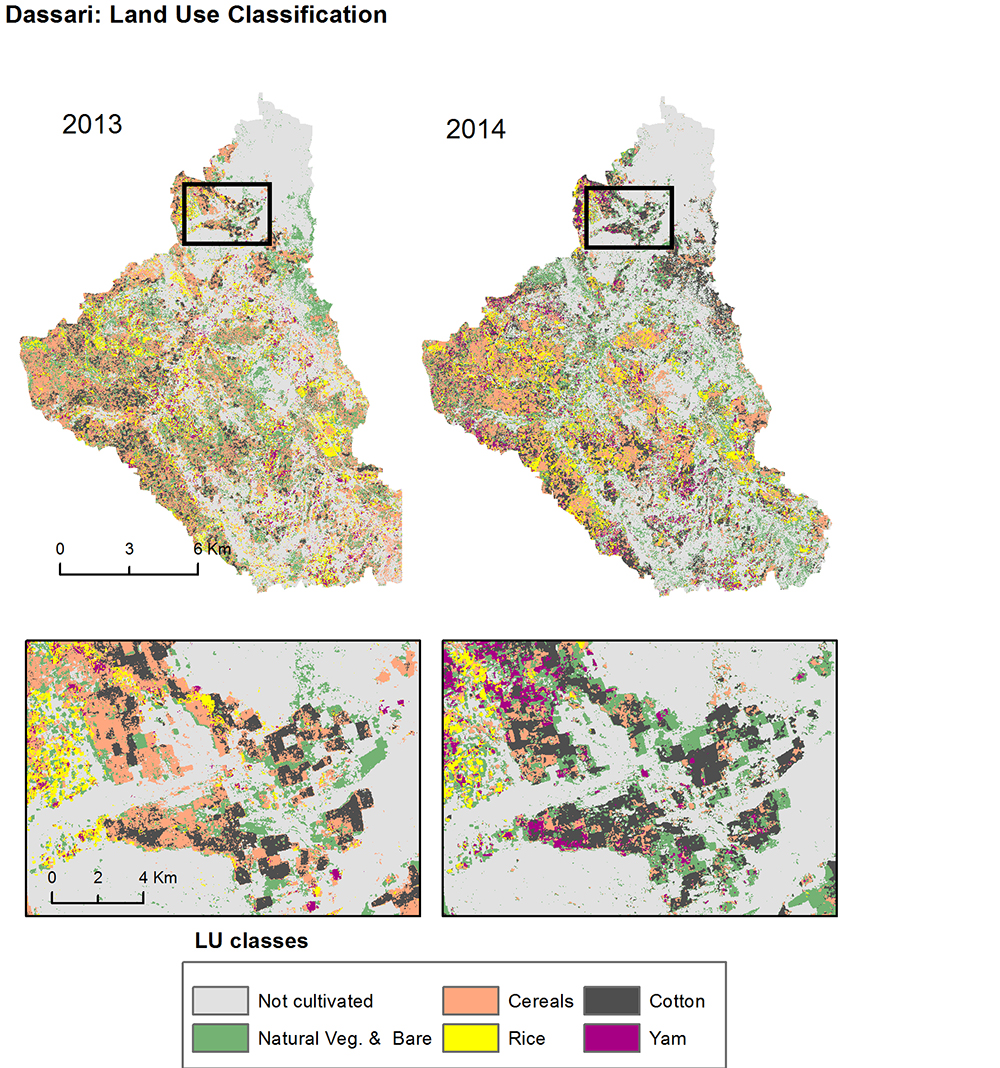 Wie werden die westafrikanischen Savannen überhaupt genutzt? Wo wird Ackerbau betrieben, wo wachsen welche Feldfrüchte? Vor dem Start des WASCAL-Projekts konnte das niemand flächendeckend und aktuell beantworten. Mittlerweile aber wurden aus Satellitendaten erstmals Landnutzungskarten erstellt und kontinuierlich verbessert. „Für drei kleinere Gebiete haben wir mehrere Jahre hintereinander sehr gute Karten erzeugt“, sagt Michael Thiel. Das nächste Ziel seien nun Karten, welche die Situation in ganz Westafrika abbilden.
