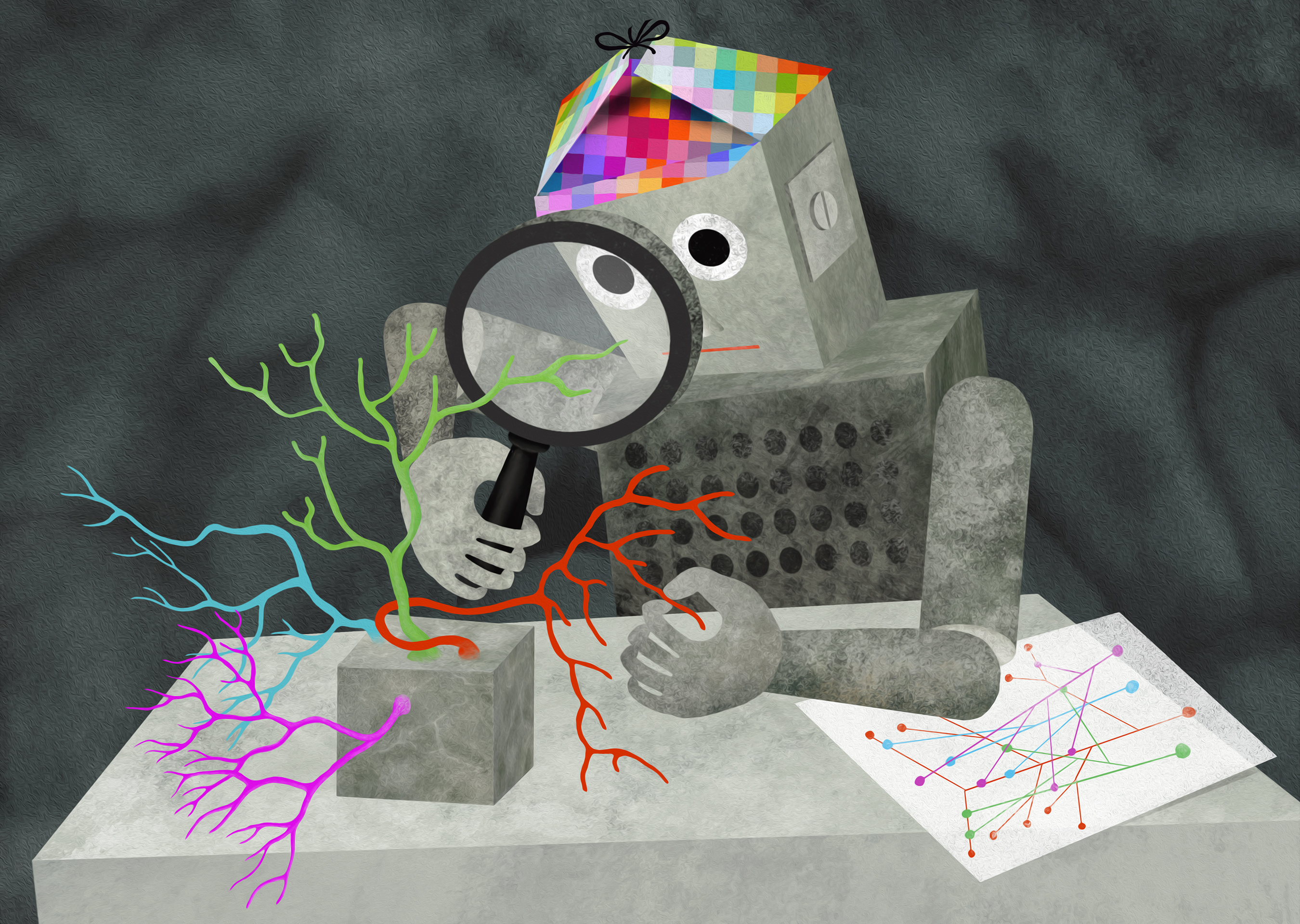 Glücklicherweise haben sich zeitgleich mit den Mikroskopietechniken auch die Analysemethoden verbessert. Lange Zeit schien nur das menschliche Gehirn die Teile und Verbindungen von Nervenzellen zuverlässig in den elektronenmikroskopischen Aufnahmen erkennen und verfolgen zu können. So mussten immer noch Menschen in stundenlanger Bildschirmarbeit Zellbestandteile in den Bilderstapeln verfolgen und Computeranalysen korrigieren. Dadurch dauerte die Rekonstruktion selbst kleinster Datensätze viele Jahre. Vor wenigen Jahren holten sich die Forscher dann jedoch Hilfe: von künstlicher Intelligenz.