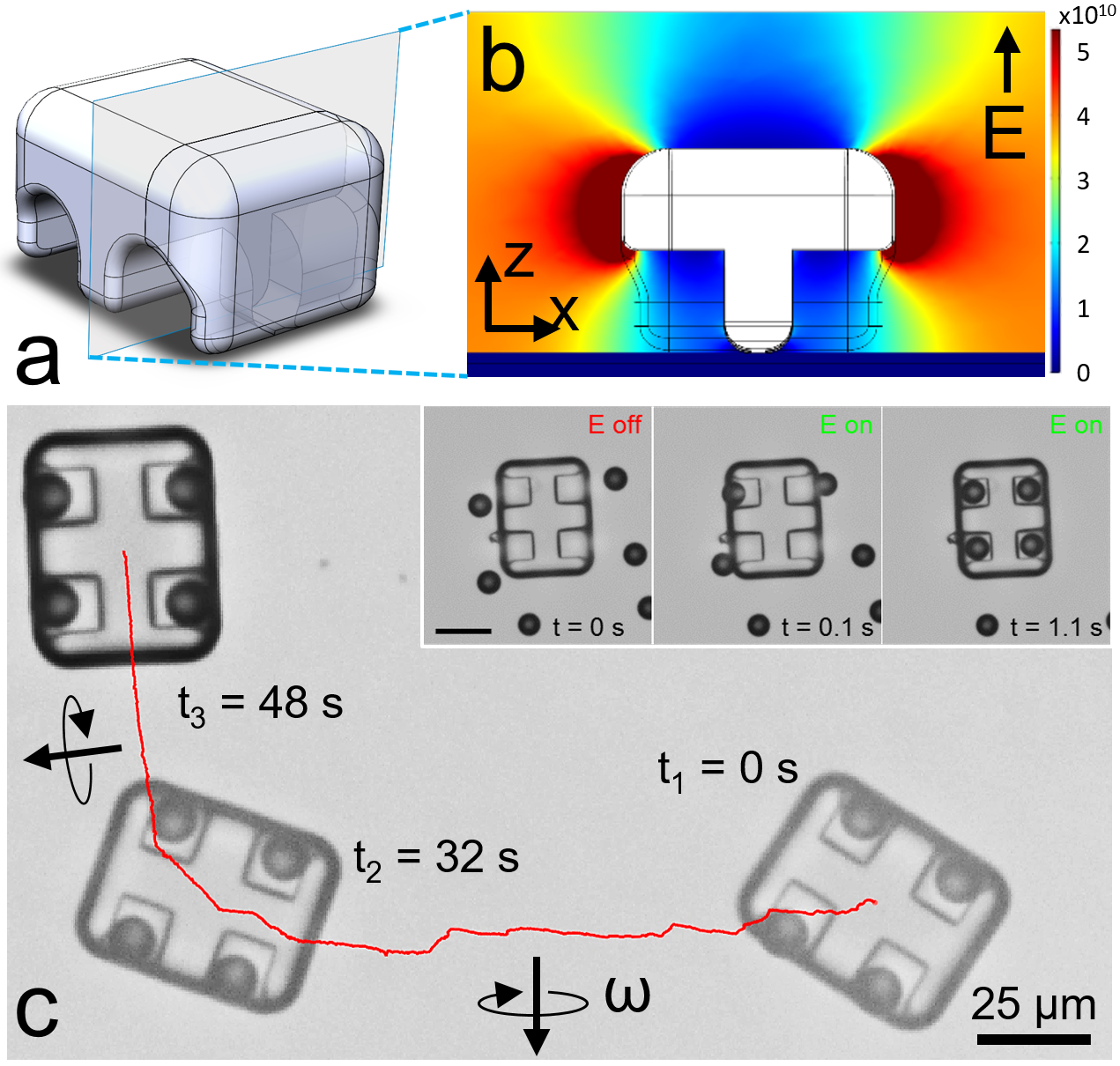 Wie die Komponenten solcher Kleinstroboter zusammenkommen, hängt von ihrer Konstruktion und Form und den daraus resultierenden dielektrophoretischen Kräften ab, wenn sie einem inhomogenen elektrischen Feld ausgesetzt sind.