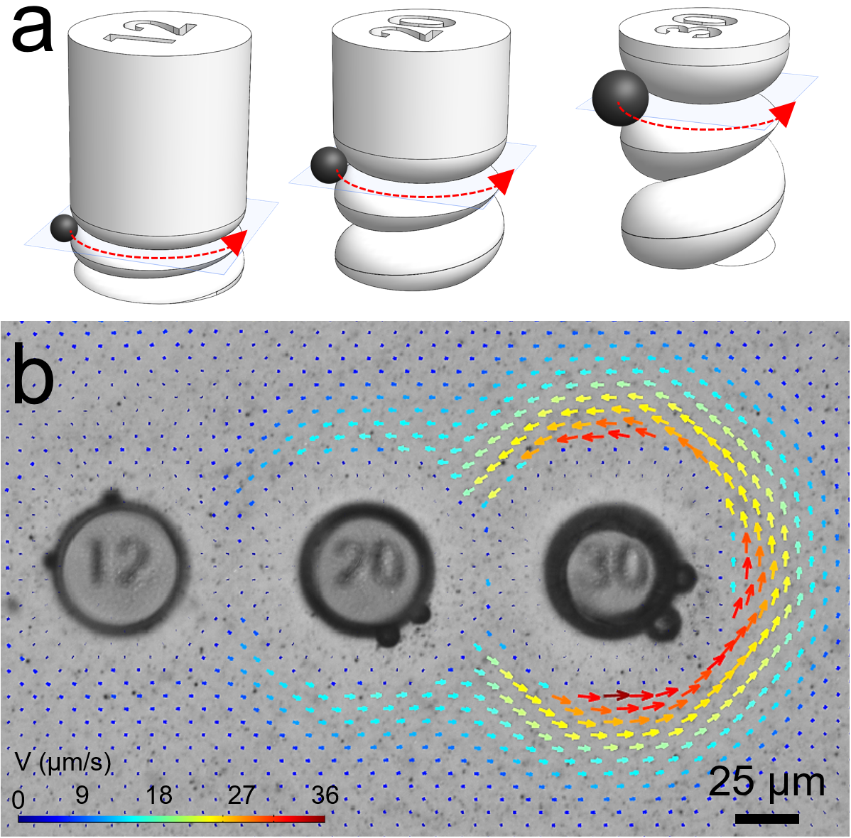 The individual components were built through a special 3D printing method using two-photon lithography. “Our first design was a microcar, as an homage to the ubiquity of wheeled propulsion in our lives,”Alapan continues. “We fabricated the 3D frame or chassis with its wheel-pockets, as this structure generates very attractive gradient forces for the magnetic microactuators – the wheels. Within seconds of applying the electric field, the wheels self-assembled into these pockets!” The researchers then steered the microcar by a vertically rotating magnetic field, as can be seen here.