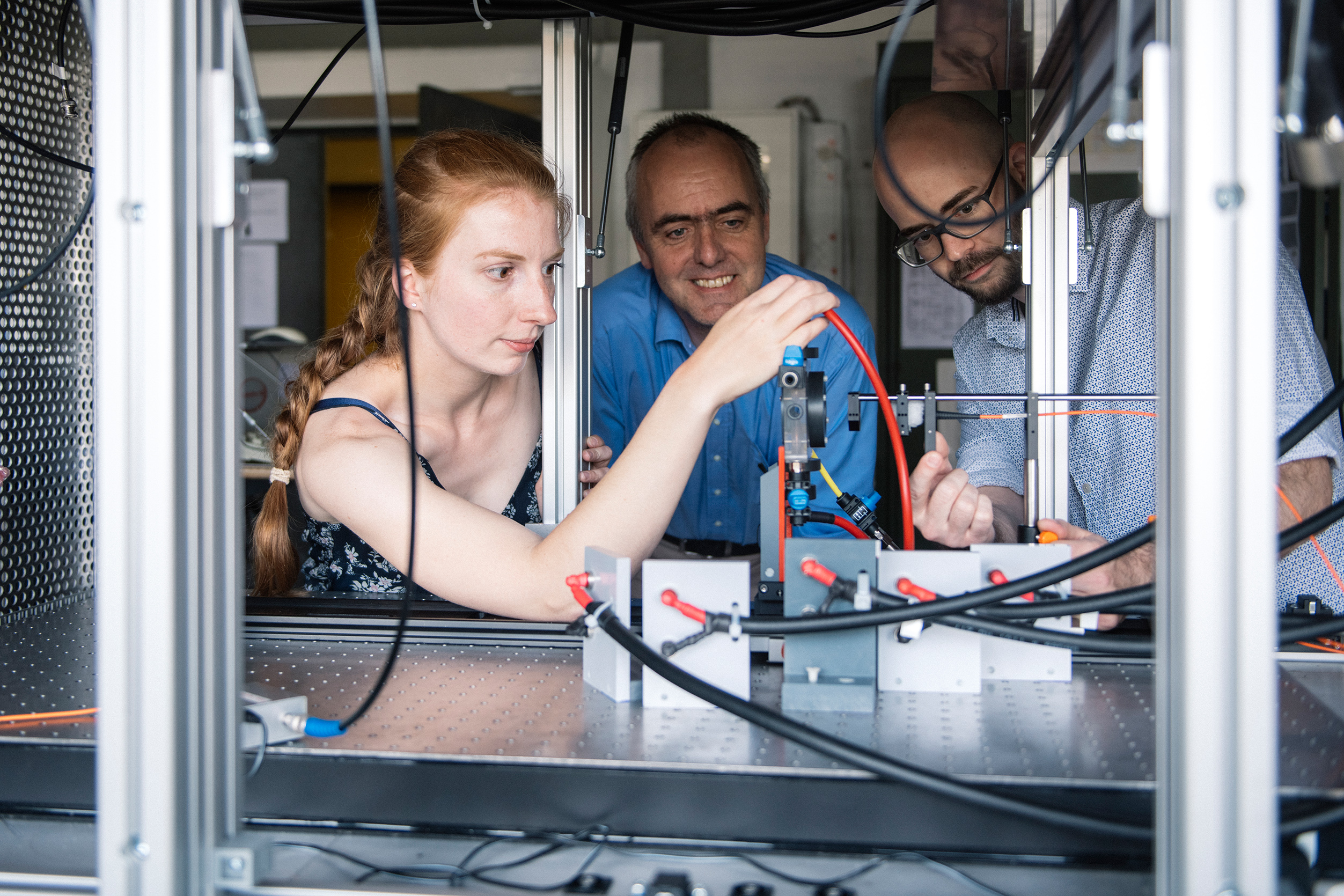 In der jetzigen Studie haben die Forscherinnen und Forscher Plasmen direkt in einer Flüssigkeit erzeugt. Dazu legten sie an eine haarfeine, untergetauchte Elektrode für mehrere Milliardstelsekunden eine hohe Spannung an. Durch die Zündung des Plasmas entsteht an der Spitze der Elektrode eine hohe negative Druckdifferenz, die dazu führt, dass sich in der Flüssigkeit Risse bilden. In diesen Rissen breitet sich dann das Plasma aus. „Das Plasma lässt sich gut mit einem Blitz vergleichen, nur hier unter Wasser“, so Katharina Grosse.