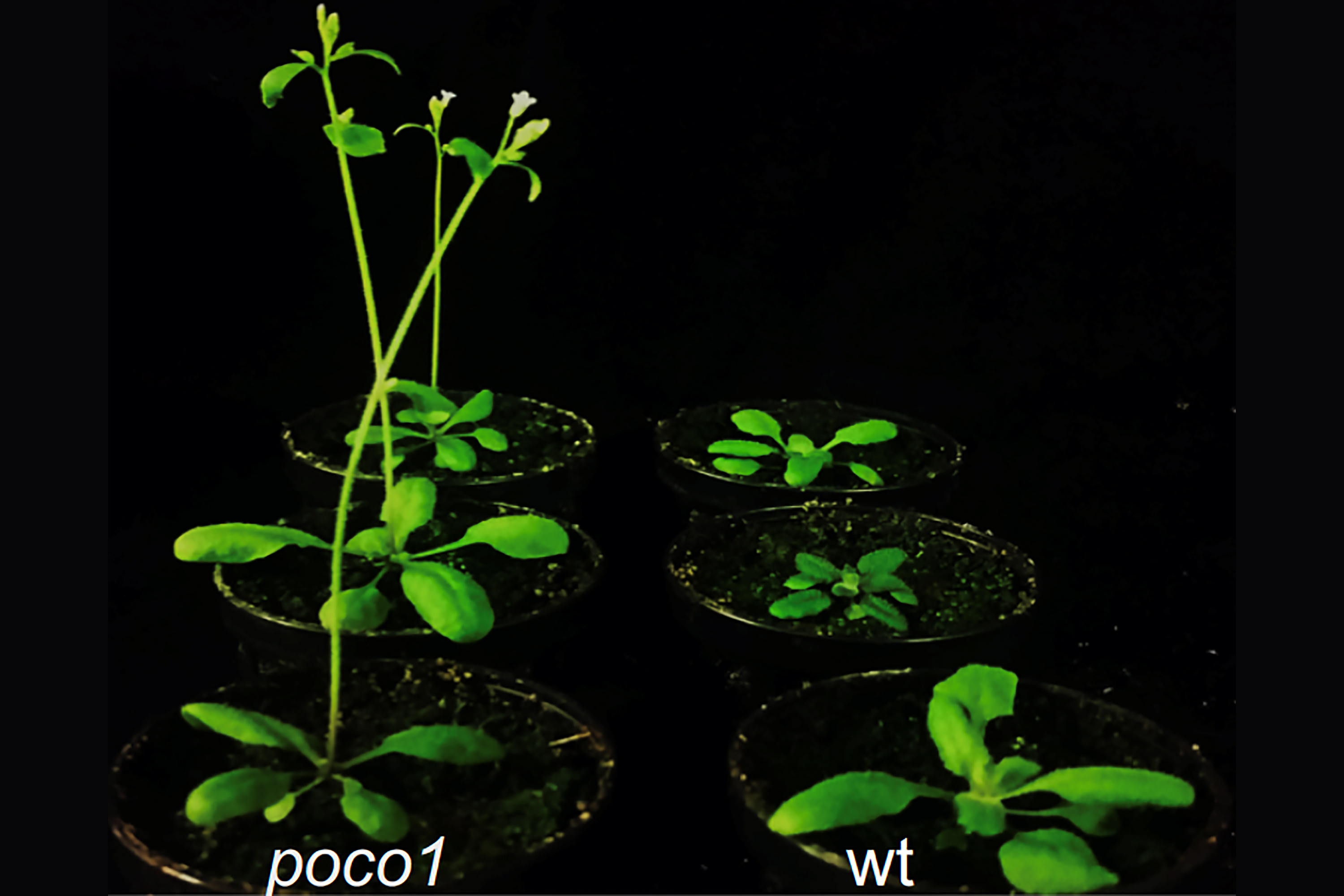 The comparison of root growth also points in the same direction: while in the Arabidopsis wild types a certain control mechanism stops the length growth of the roots at the transition to the reproductive phase, this signalling pathway is disturbed in the Poco1 plants. As they lack sufficient quantities of the substances contributing to this regulation, they have significantly longer roots than wild plants. “This difference compared to wild plants also seems to have been caused by the Poco1 protein,” Emami emphasises. “By downregulating the signals, this protein promotes root growth and weakens the plant’s inhibition to flower,” he adds.