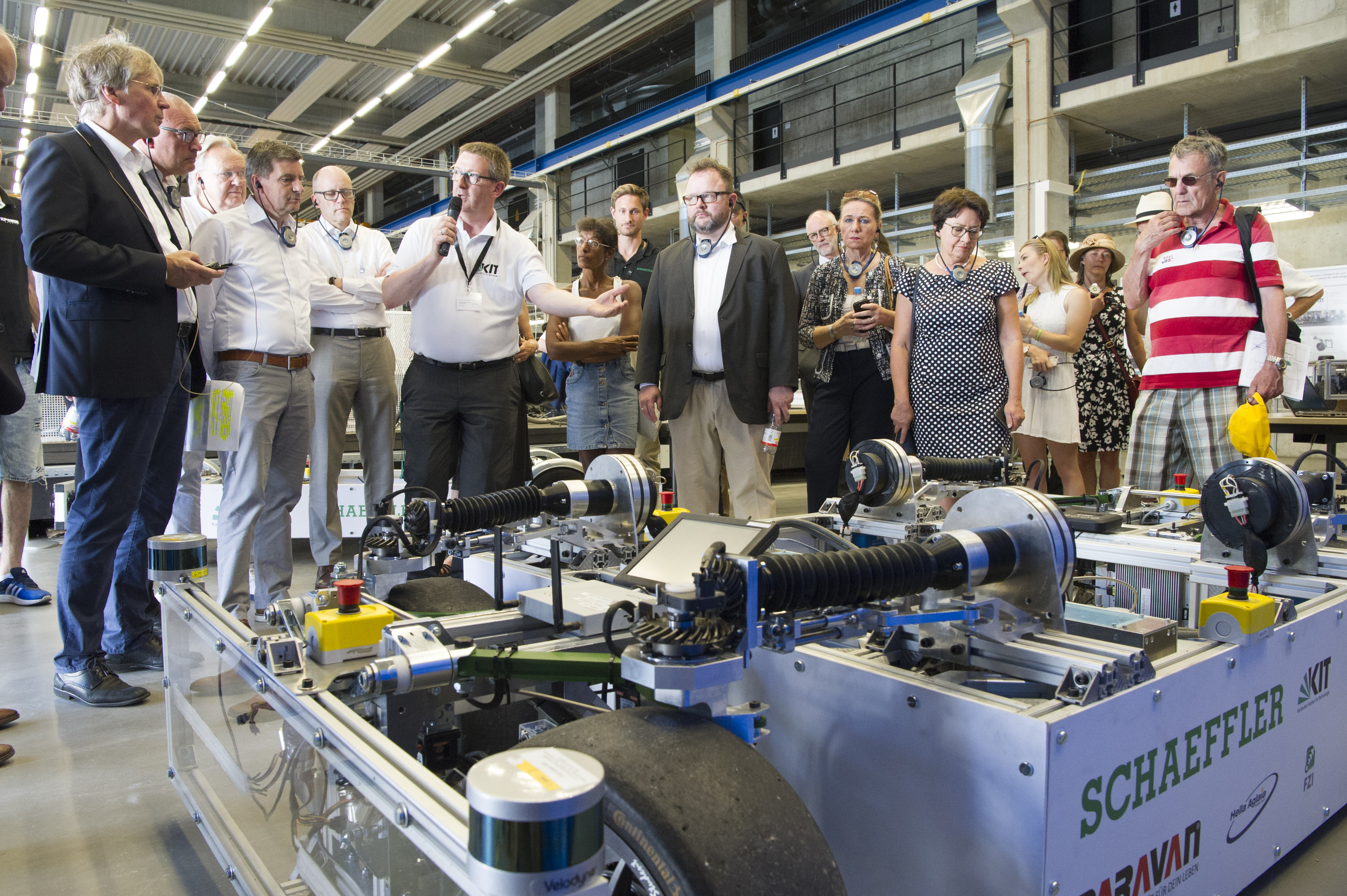 Im Fokus der diesjährigen Veranstaltung stand der breite Themenkomplex der Mobilität mit zahlreichen fahrzeugtechnischen Einrichtungen wie Prüfständen und Forschungshallen am Campus Ost des KIT, der auch in Nähe des Testfelds Autonomes Fahren Baden-Württemberg liegt. So gab es unter anderem Vorführungen an den hochmodernen Prüfständen für Schienensensorik und Arbeitsmaschinen sowie an einem Akustikrollenprüfstand. Die Studentinnen und Studenten des Teams KA-RaceIng führten ihre Rennwagen vor, am Stand der Hochschulgruppe Kamaro mit selbstfahrenden Modellrobotern für den Einsatz in der Landwirtschaft herrschte ebenso reger Andrang wie bei der Präsentation von regenerativen Kraftstoffen aus dem Forschungsprojekt reFuels.