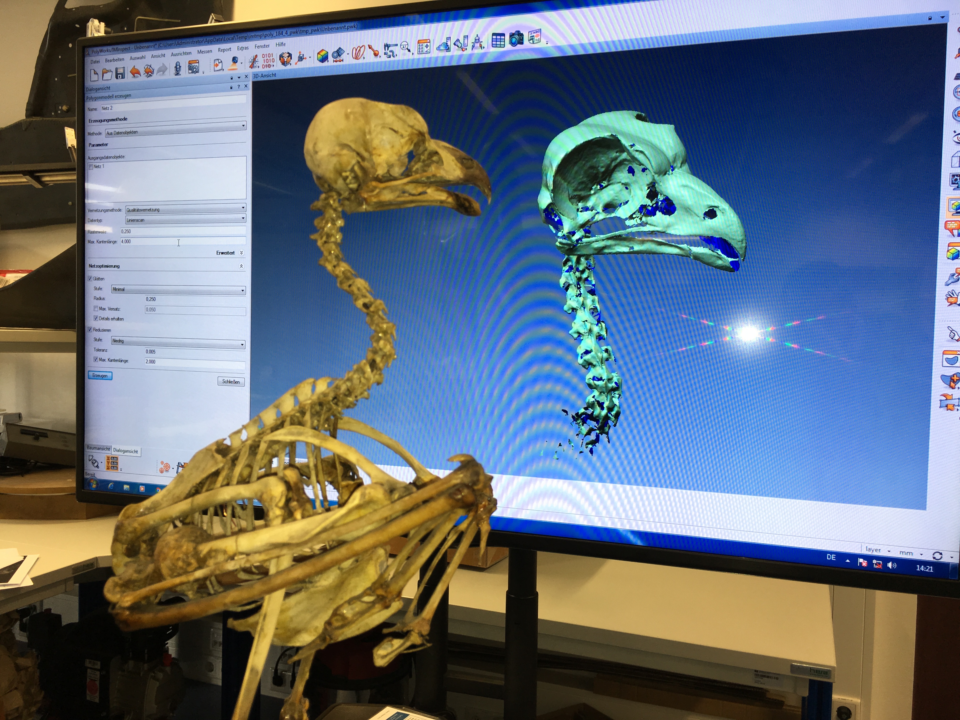 In dem Projekt arbeitet das Forschungsteam eng mit dem Nürnberger Tiergarten und dem Bionicum Nürnberg zusammen. Die Zusammenarbeit ermöglicht es dem Forschungsteam, Untersuchungen an einem Eulen-Skelettmodell vorzunehmen. Ergänzt werden die Ergebnisse durch bereits vorhandene biologische Untersuchungen an Eulen des Lehrstuhls und Instituts für Biologie II (Zoologie) der RWTH Aachen. Auf dieser Basis hat das Forschungsteam Computermodelle generiert und die Freiheitsgrade der drei Drehachsen erfasst.