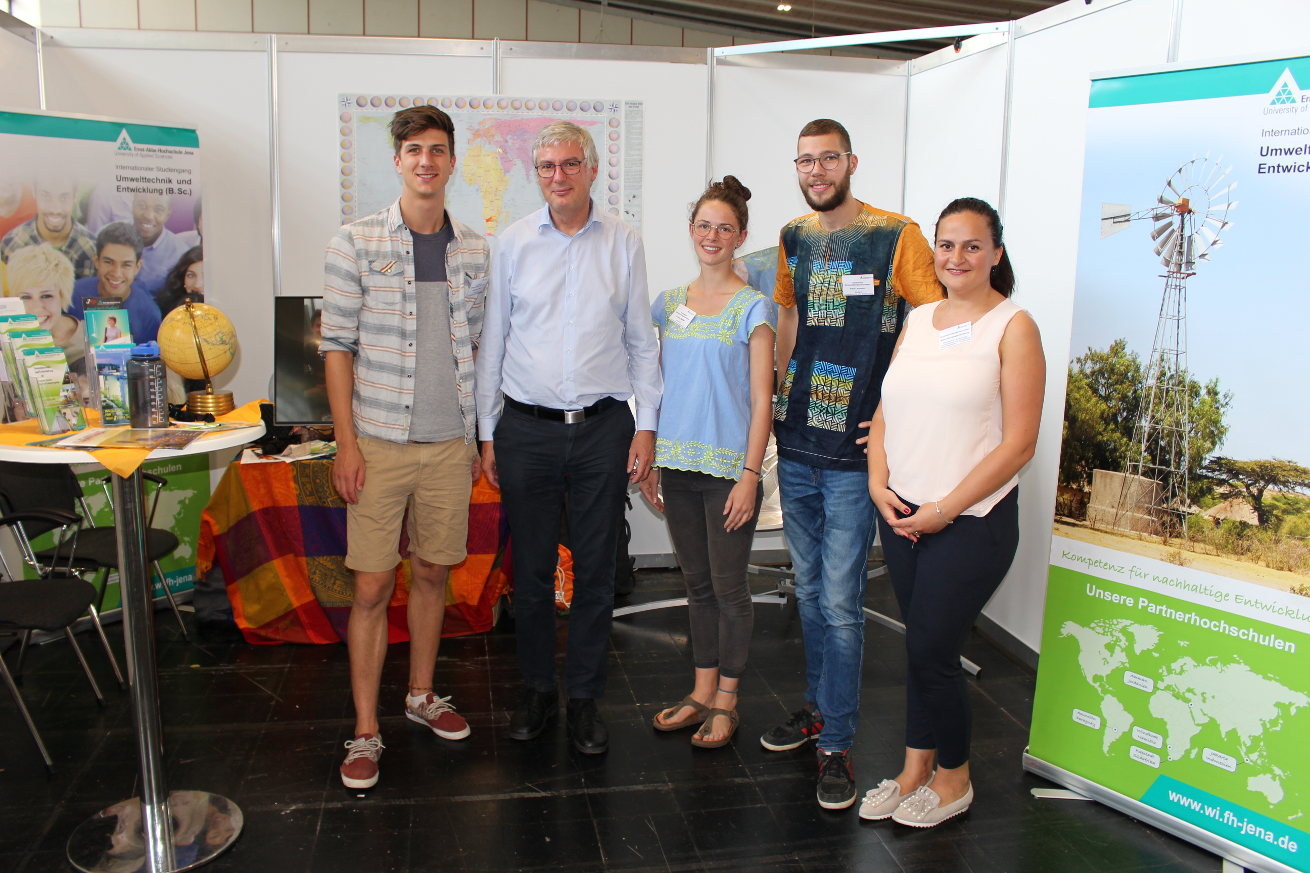 Die zukünftigen Umwelttechniker Leonie Methler, David Hautmann, Johannes Meidl und Paul Liermann, die den Studiengang in Dortmund vorstellten, kamen zufrieden nach Jena zurück. Unterstützt von Natia Khorguashvili-Kinne sowie den Professoren Frank-Joachim Möller aus dem Fachbereich Wirtschaftsingenieurwesen und dem Prorektor für Studium, Lehre und Weiterbildung der EAH, Andreas Schleicher, hatten sie viele Gespräche mit Kirchentagsbesuchern geführt, darunter zahlreiche Schüler und Studenten.