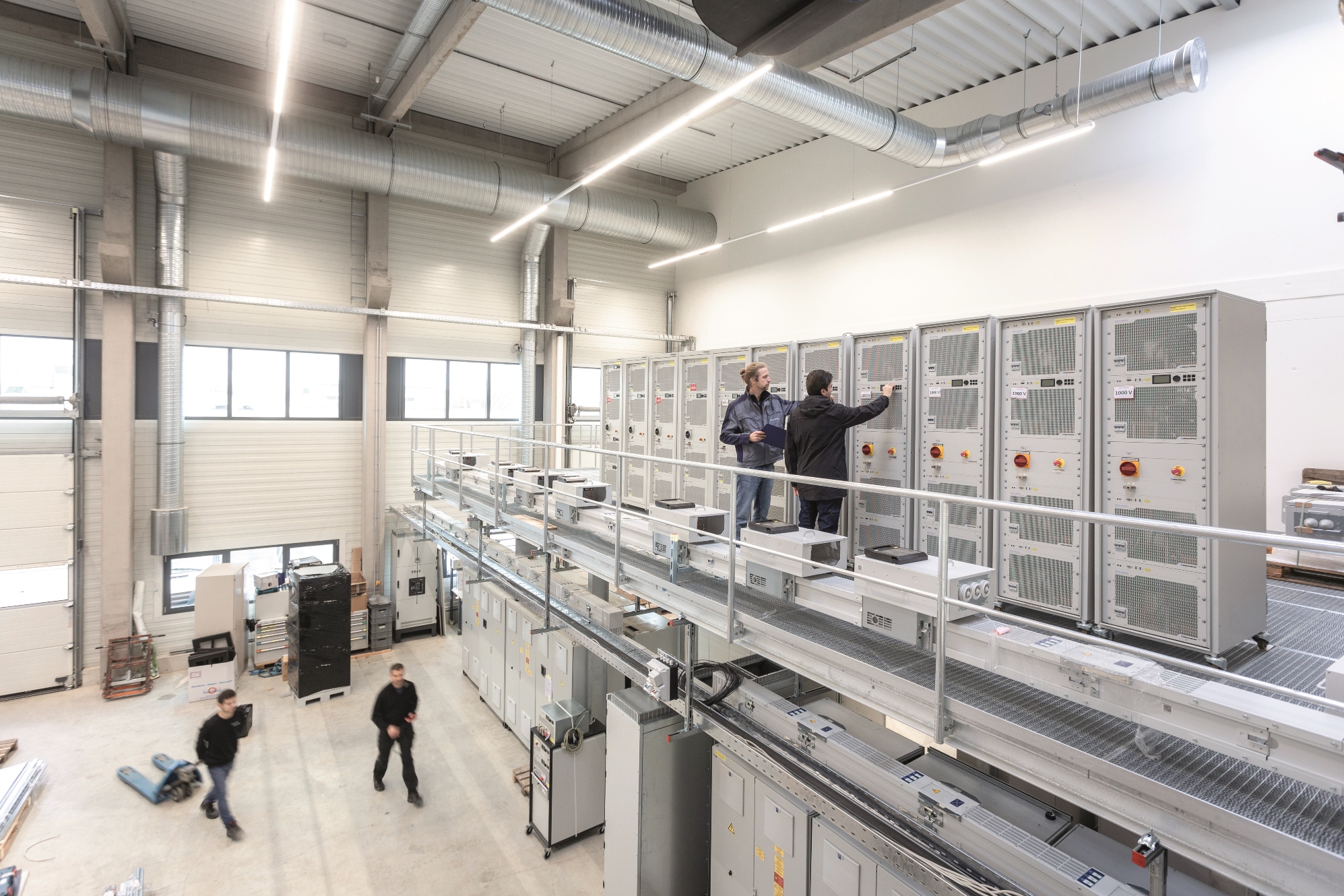Mit dem unabhängigen TestLab Power Electronics (zertifiziert nach DIN 17025:2005) kann das Fraunhofer ISE seinen Industriekunden am neuen Standort nun Entwicklung, Tests, Ertüchtigung und Zertifizierung von Komponenten und Systemen bis in den Multimegawatt- und den Mittelspannungsbereich anbieten. Eine speziell ausgelegte »Over and Under Voltage Ride Through«-Anlage erlaubt die dynamische Variierung der Spannung, um partikulare Netzsituationen wie Über- oder Unterspannungen zu simulieren oder Situationen mit besonderen Netzimpedanzen nachzubilden.