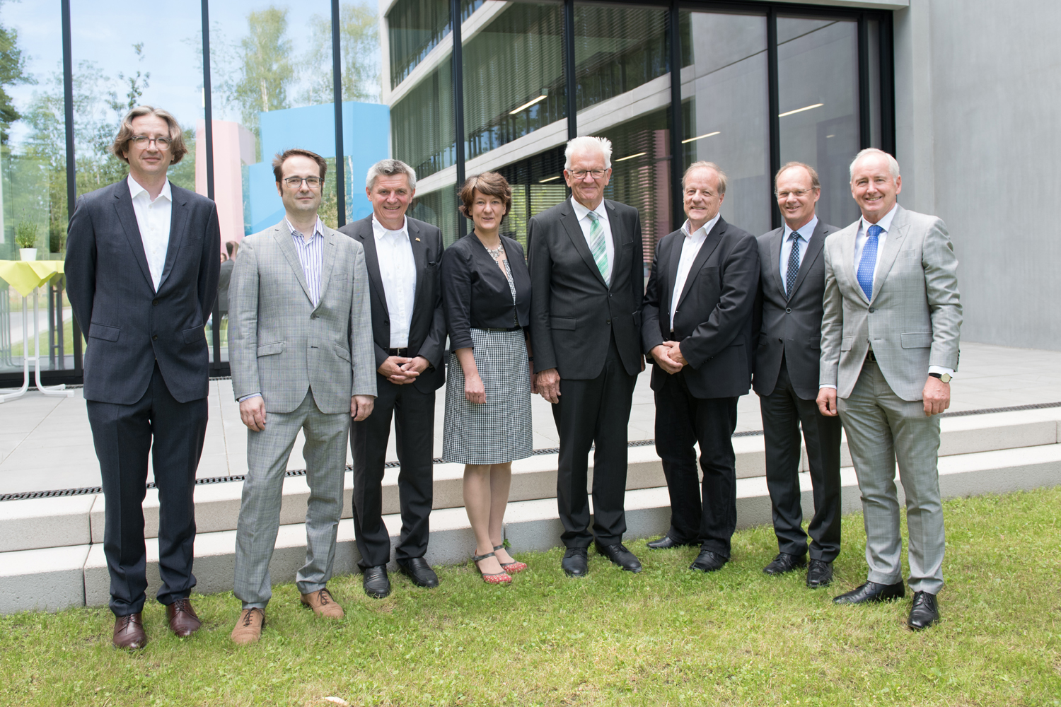 Bildunterschrift zum beigefügten Gruppenbild: v.l. Prof. Fedor Jelezko, Prof. Martin Plenio, Martin Rivoir, MdL (SPD), Finanzstaatssekretärin Gisela Splett, Ministerpräsident Winfried Kretschmann, Jürgen Filius, MdL (Grüne), Universitätspräsident Prof. Michael Weber, Wilmuth Lindenthal (Leiter VB-BW, Amt Ulm)
