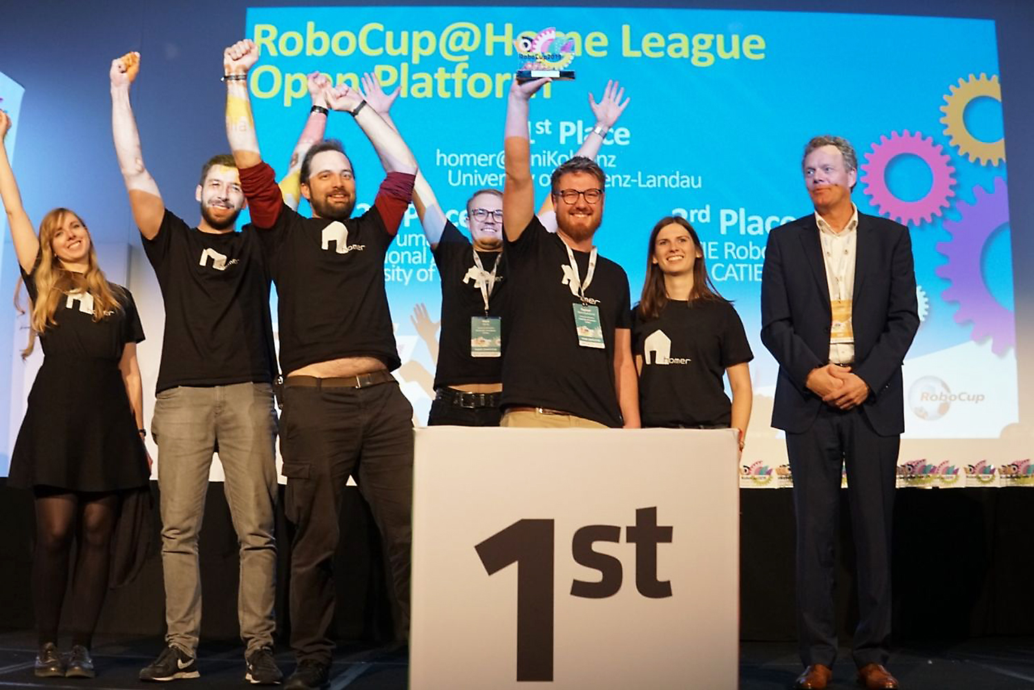 Bereits zum vierten Mal gewann das Team homer der Universität Koblenz-Landau bei der Robotik-Weltmeisterschaft RoboCup in der @Home Liga - nach den Siegen 2015 im chinesischen Hefei, 2017 im japanischen Nagoya und 2018 im kanadischen Montreal – nun im australischen Sydney den Weltmeistertitel in der Open Platform Kategorie. Damit ist es das erfolgreichste Team in der @Home Liga.