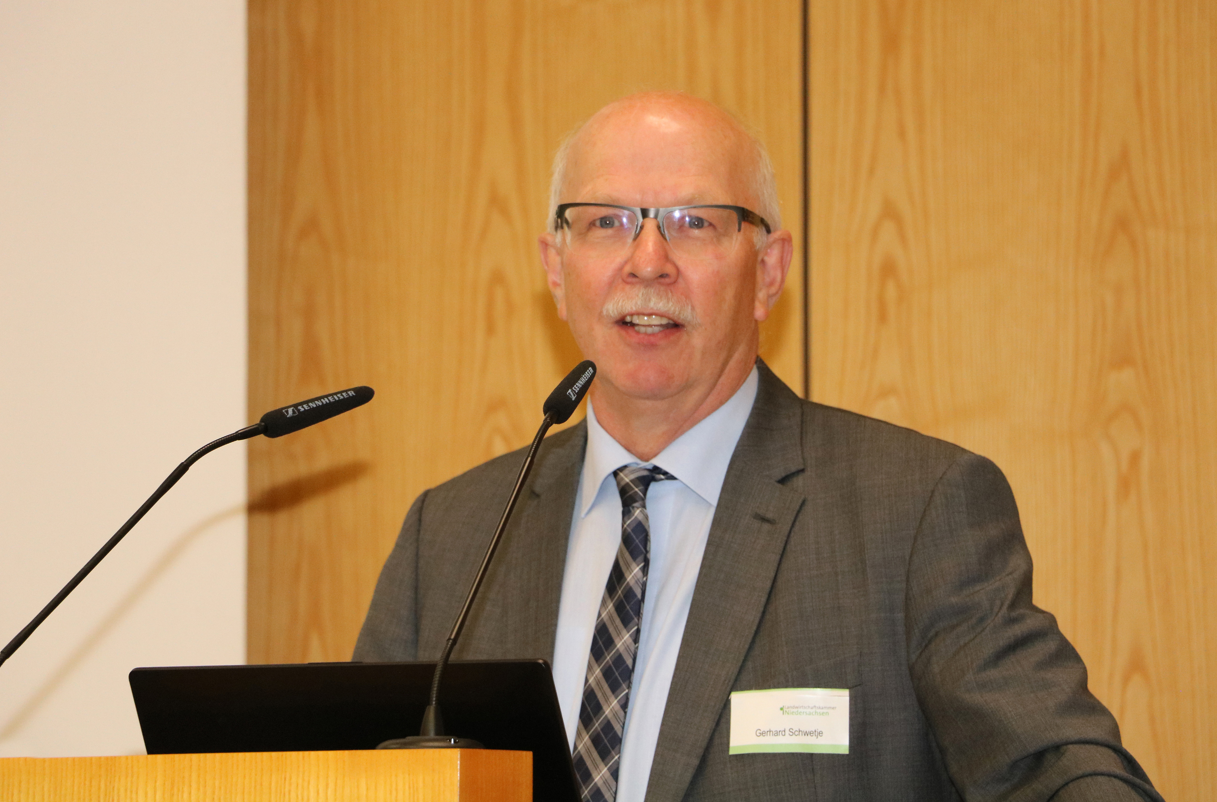 Dass die Landwirtschaft in besonderer Weise vom Klimawandel betroffen sei, daran erinnerte Gerhard Schwetje. „Neben der Anpassung an dieses Phänomen ist der Klimaschutz und damit die Reduzierung von Treibhausgasen ebenso wichtig für die Bäuerinnen und Bauern“, sagte der Präsident der Landwirtschaftskammer Niedersachsen. Er wies darauf hin, dass die Emissionen der Landwirtschaft größtenteils auf natürlichen Prozessen beruhen und deshalb auch immer mit der Emission von Treibhausgas verbunden sind. „Eine klimaneutrale Milchproduktion kann es nicht geben!“, nannte Schwetje dazu ein Beispiel.