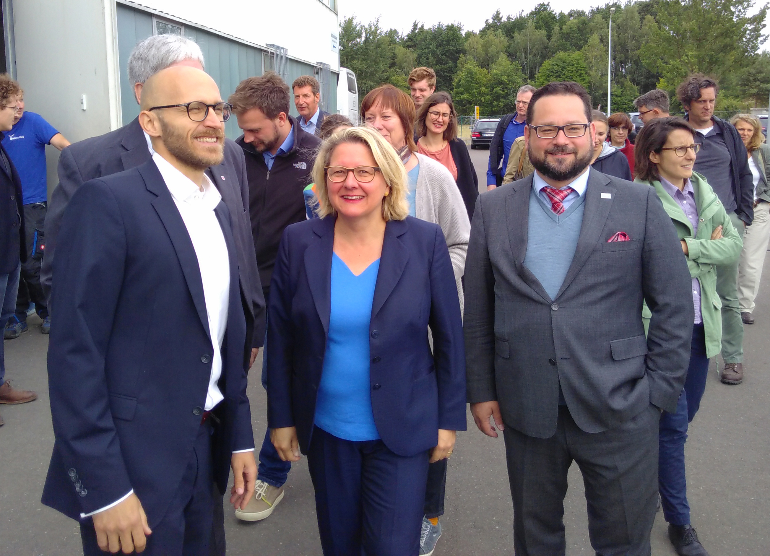 Bundesumweltministerin Svenja Schulze und DBU-Chef Alexander Bonde besuchen junges Startup-Unternehmen in Südbrandenburg