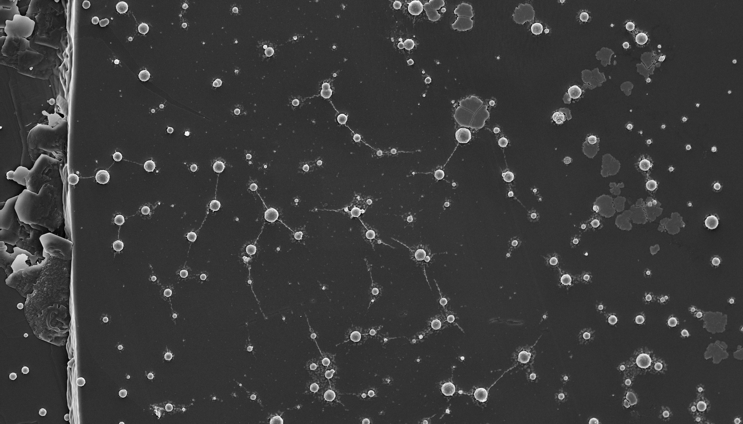 Als hartes und seltenes Metall ist Wolfram mit seinen außergewöhnlichen Eigenschaften und dem höchsten Schmelzpunkt aller Metalle eine sehr unwahrscheinliche Wahl für ein biologischen System. Nur wenige Organismen, wie thermophile Archaeaen oder zellkernlose Organismen haben sich an die extremen Bedingungen einer Wolfram-Umgebung angepasst und fanden einen Weg, Wolfram zu assimilieren. Zwei aktuelle Studien der Biochemikerin und Astrobiologin Tetyana Milojevic vom Institut für Biophysikalische Chemie der Fakultät für Chemie an der Universität Wien geben Aufschluss über die mögliche Rolle von Mikroorganismen in einer mit Wolfram angereicherten Umgebung und beschreiben eine nanoskalige Wolfram-Mikroben-Grenzfläche des extrem hitze- und säureliebenden Mikroorganismus Metallosphaera sedula, der mit wolframhaltigen Verbindungen gezüchtet wurde (Abb. 1, 2). Dieser Mikroorganismus ist es auch, der in künftigen Studien in Weltraumumgebungen auf seine Überlebensfähigkeit bei interstellaren Reisen untersucht wird. Wolfram könnte dabei ein wesentlicher Faktor sein.